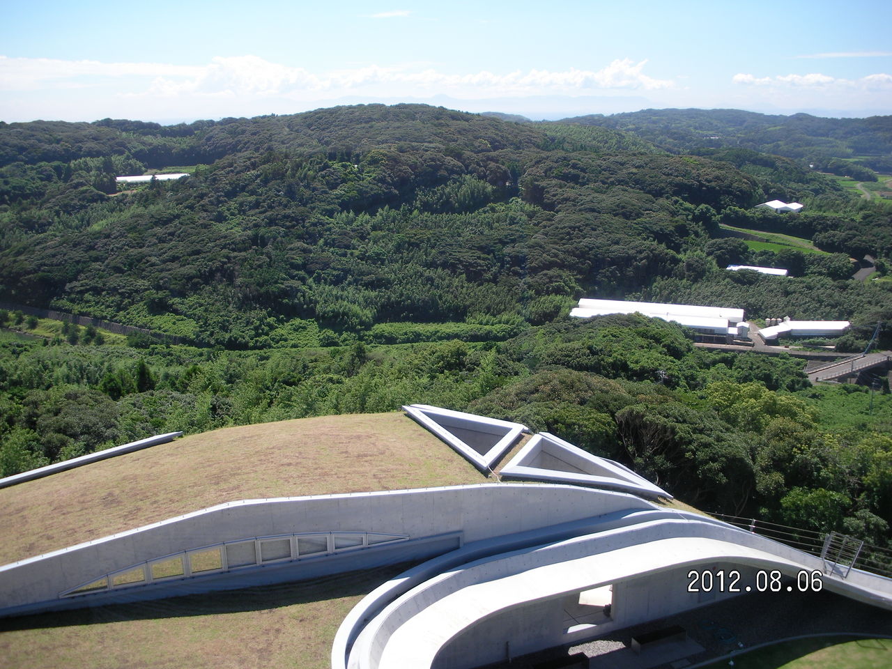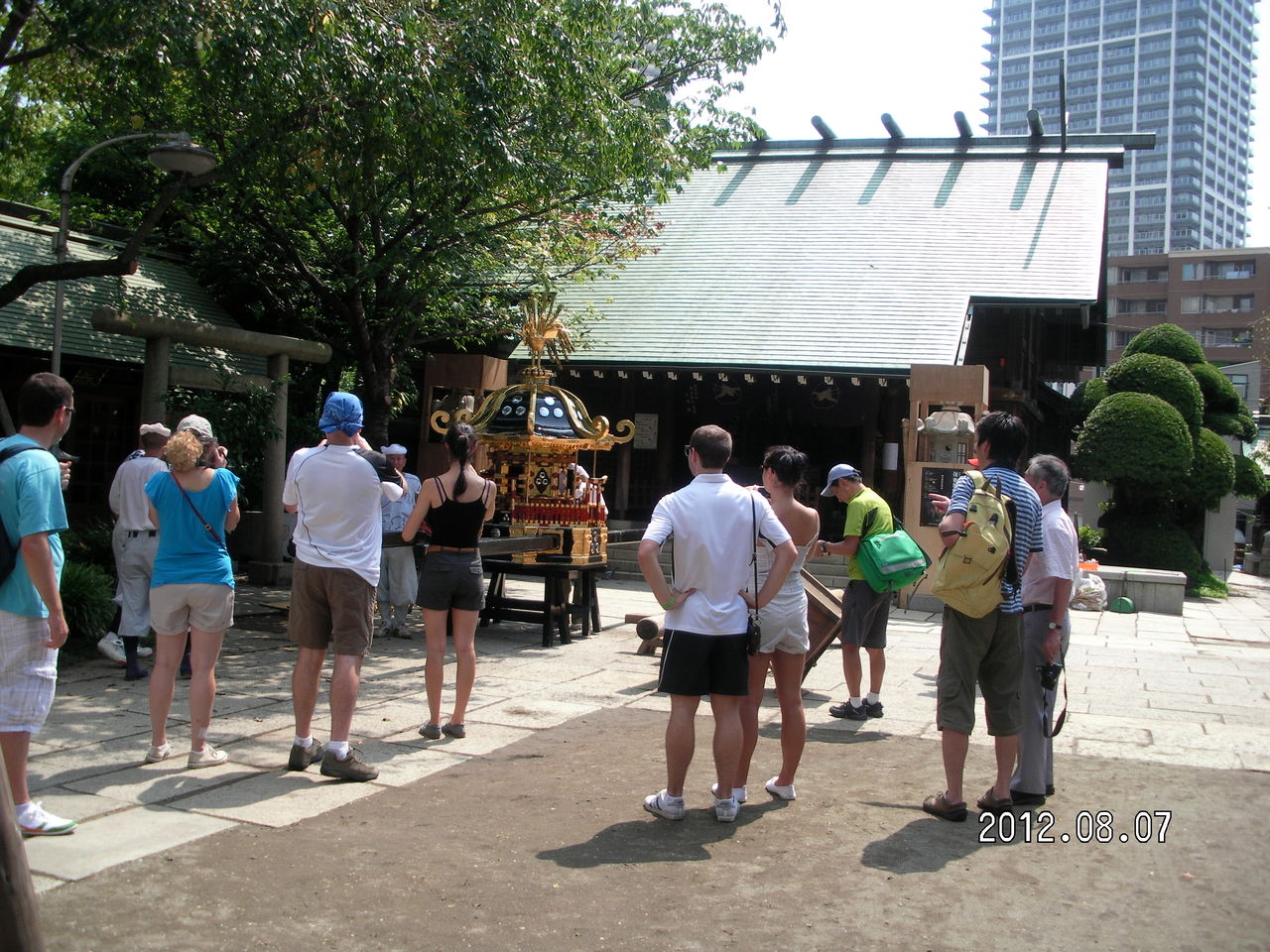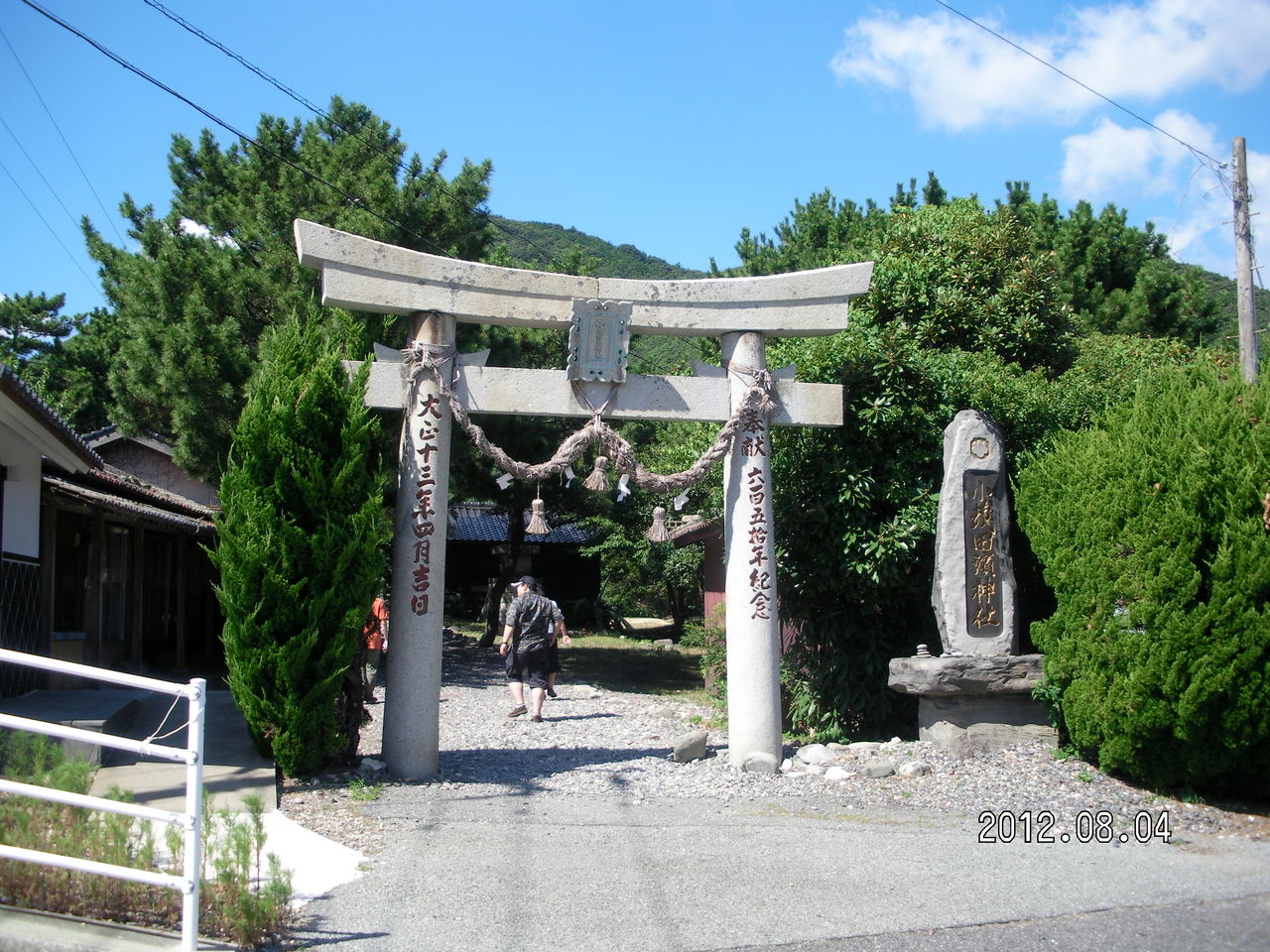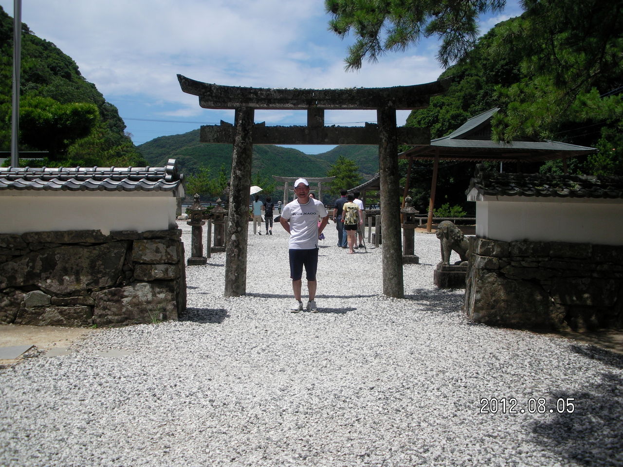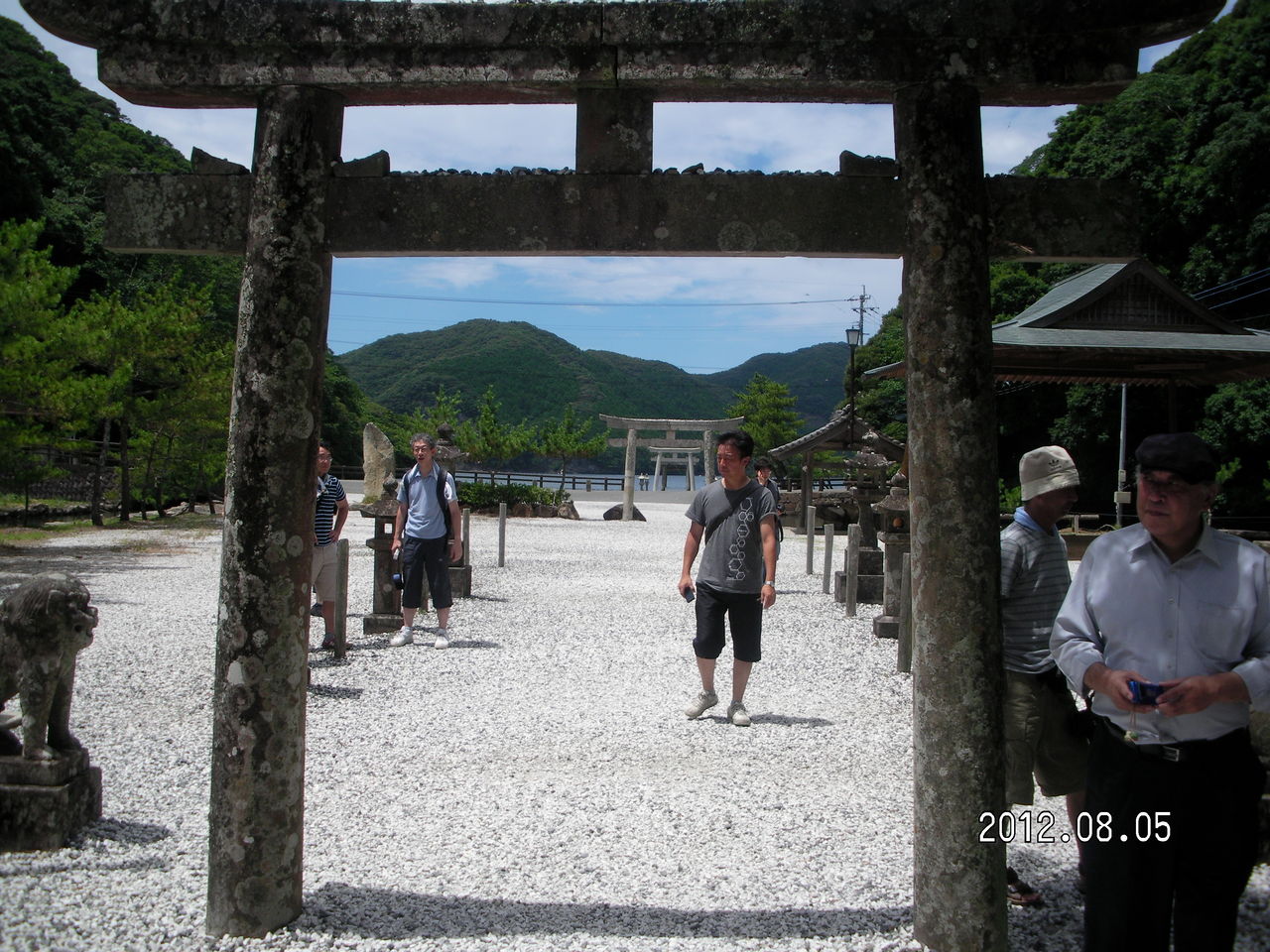 大木が生い茂る太古からの森林の中に神社が存在しする。ムッ、とするような暑い気温