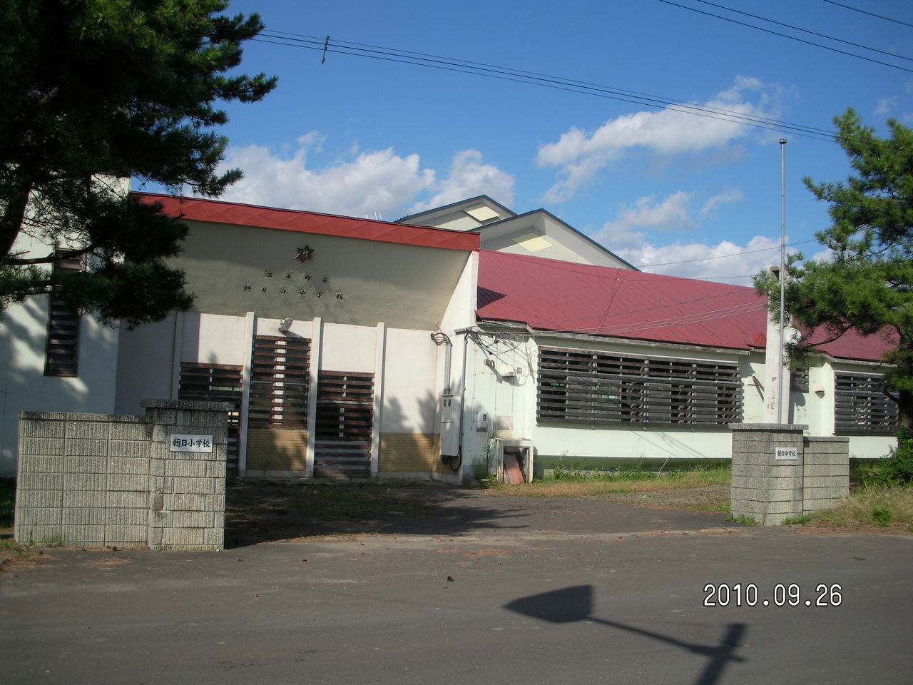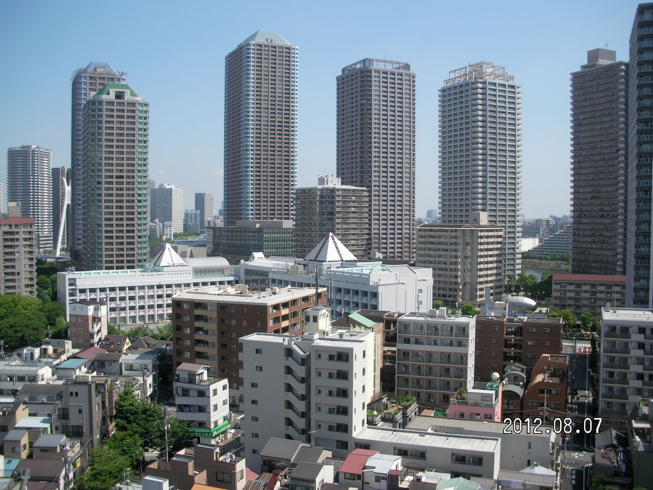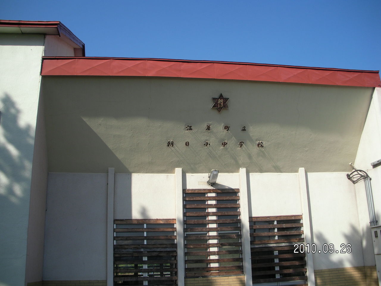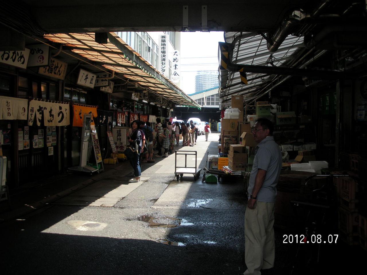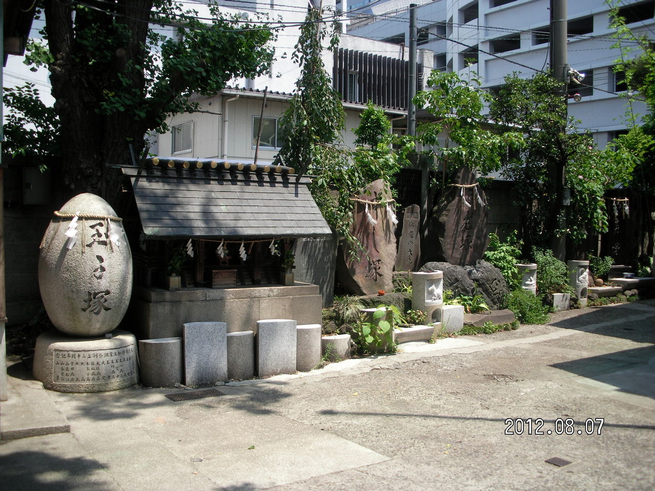 はビルの隙間に建っている。