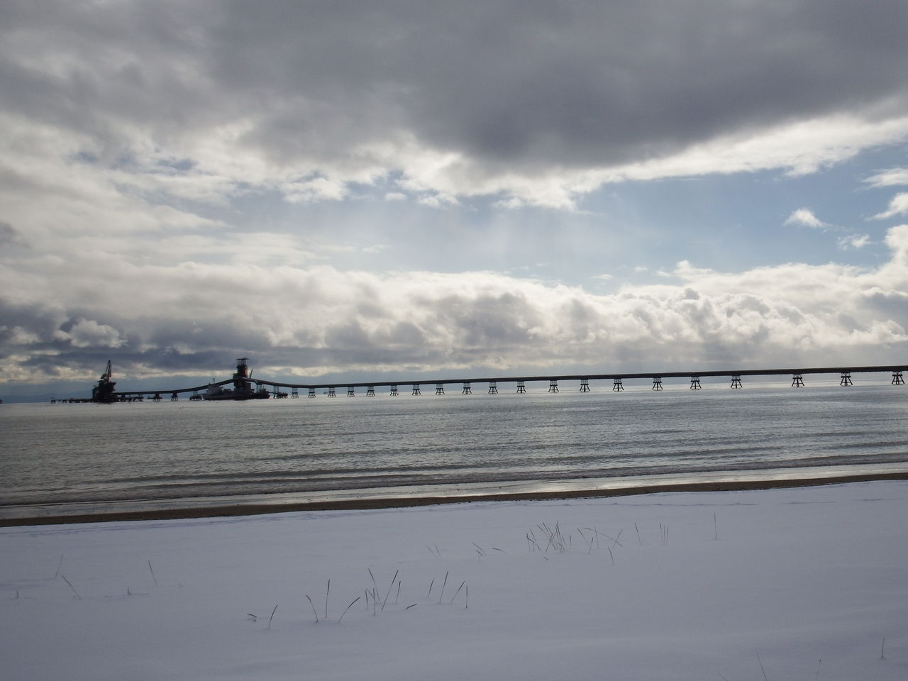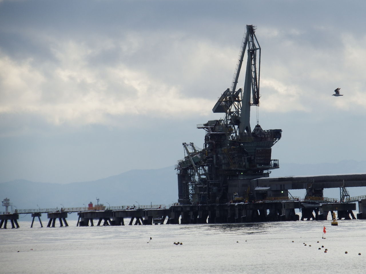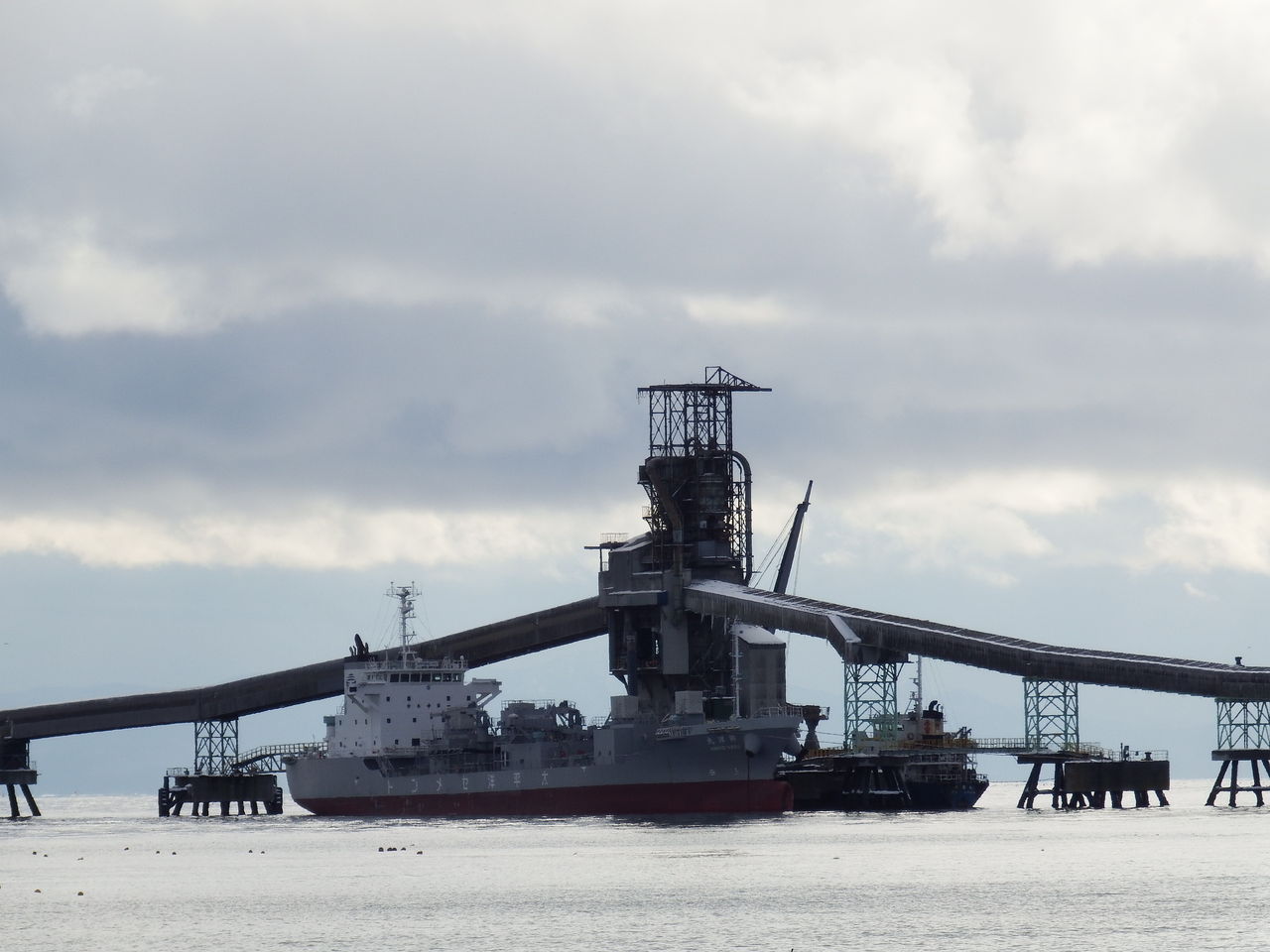 設けられたシーバース(海上桟橋)へベルトコンベアでセメントを送った帰り道は、石炭運搬船