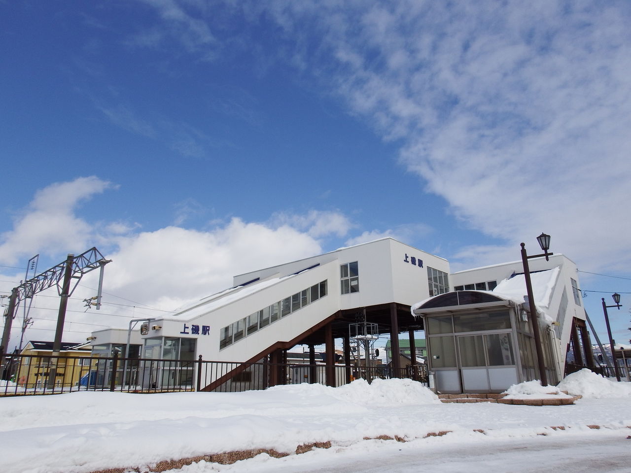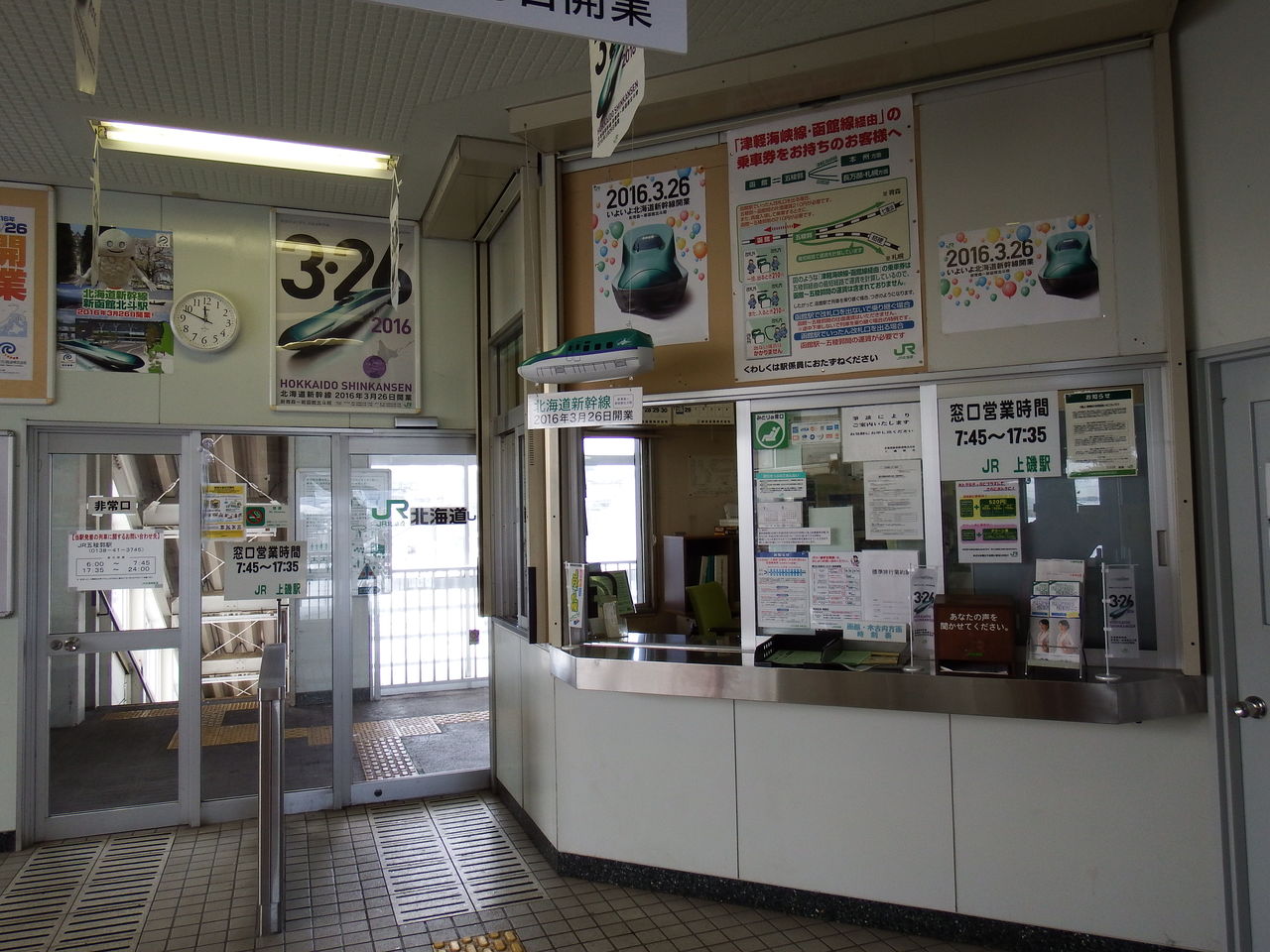 ここも、橋上駅で跨線橋の上に駅舎と待合室があります。旧上磯町の上磯の名の由来は、