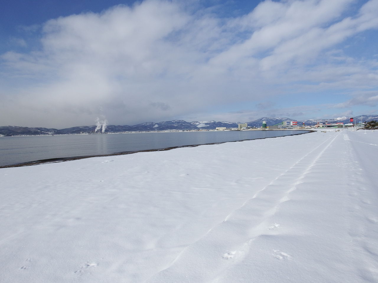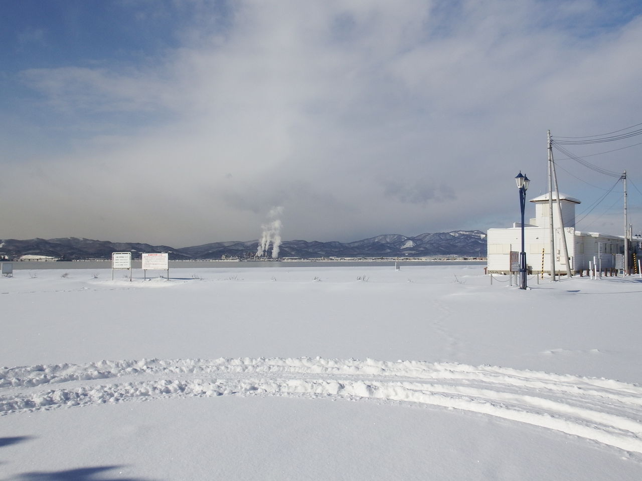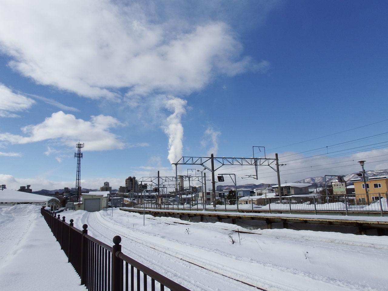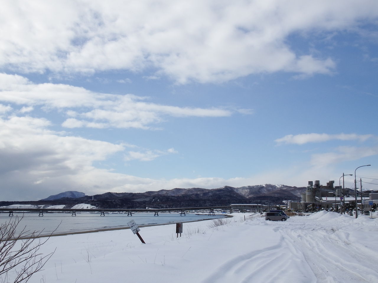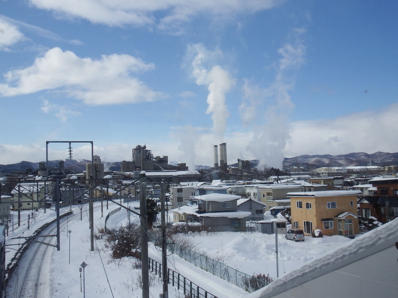 一方、これから向かう木古内方面を見ると太平洋セメントの工場が見える。