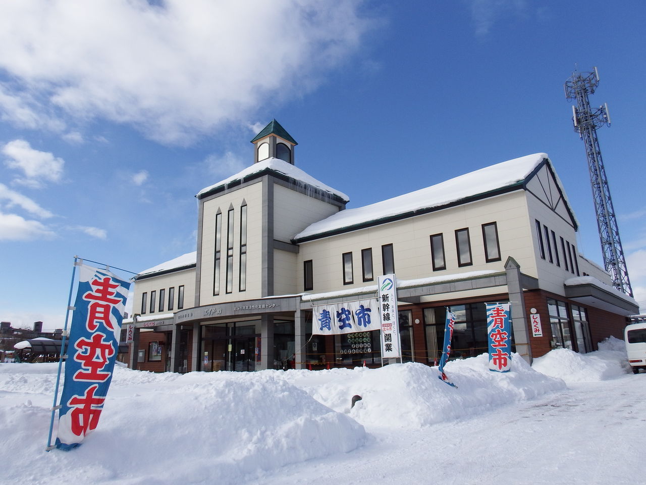 駅のとなりにあった建物では、青空市が行われていた。新鮮な海産物などが販売されている。
