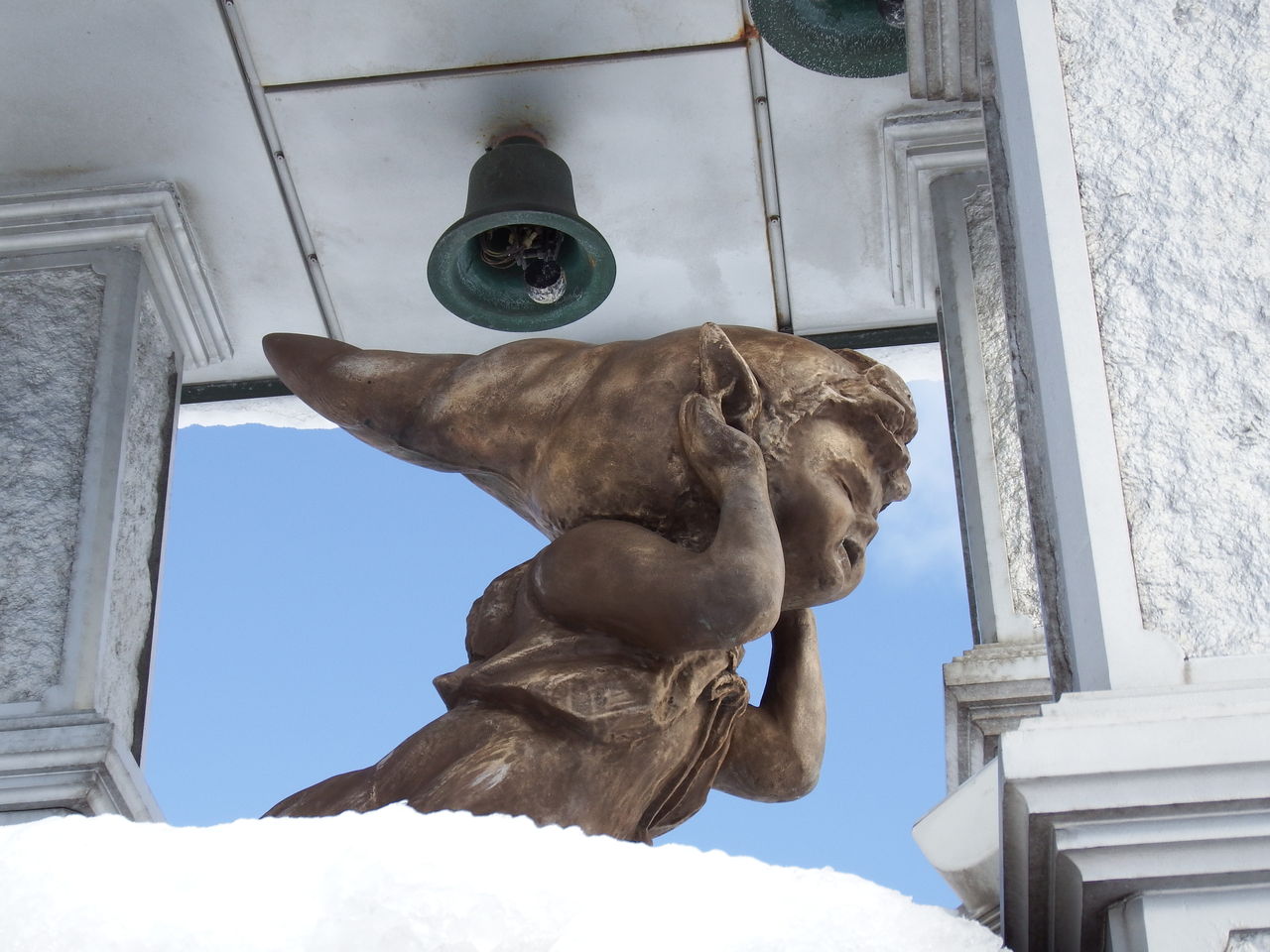正午を知らせる素敵なメロディーだったので、雪を踏みしめて撮影しに近づいただけに、