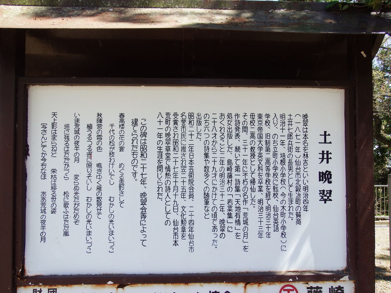 広い広い公園で、中には仙台出身の土井晩翠(どい ばんすい)の像も。