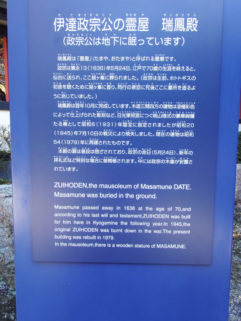 さて、仙台市の仙台城を見学した後瑞鳳殿へ。