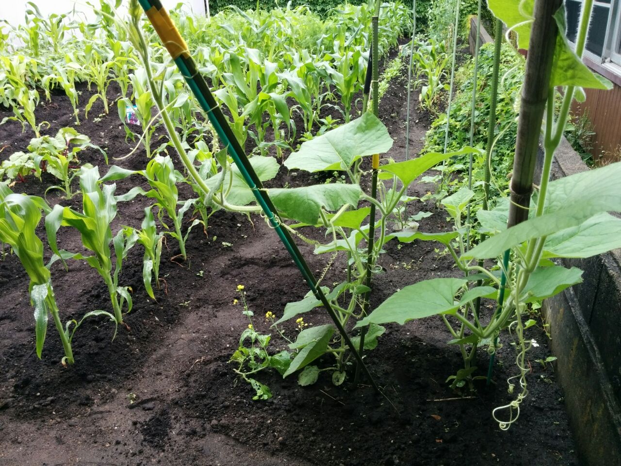 トウモロコシは秋まで待たなくてはいけないでしょう。 昨年初めて収穫しましたが、採る前に鍋を茹でて採ったトウモロコシをすぐに鍋に入れます。