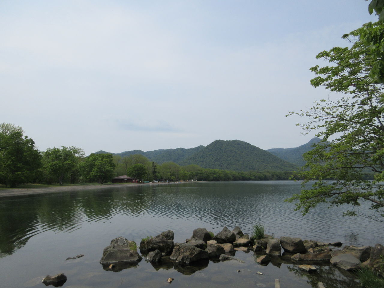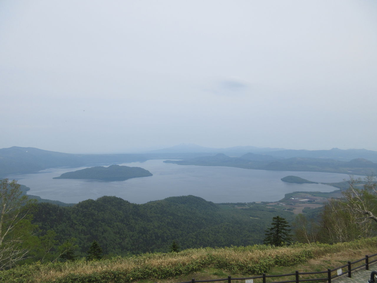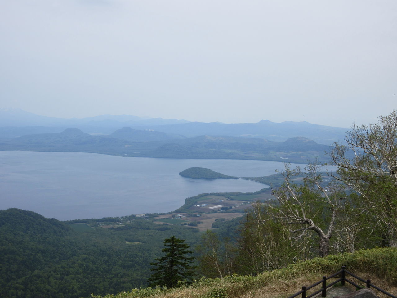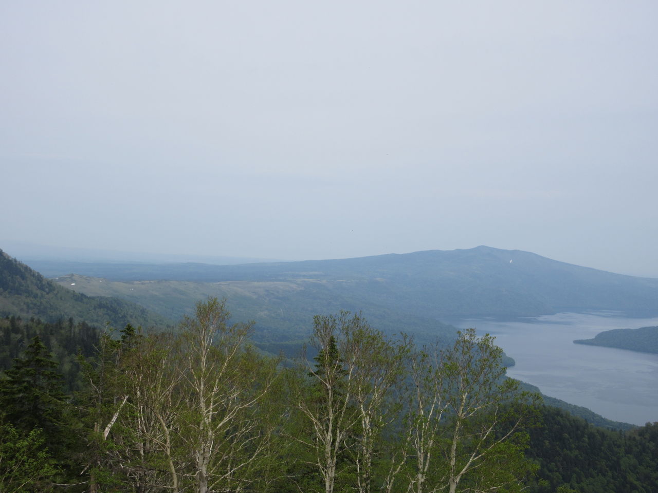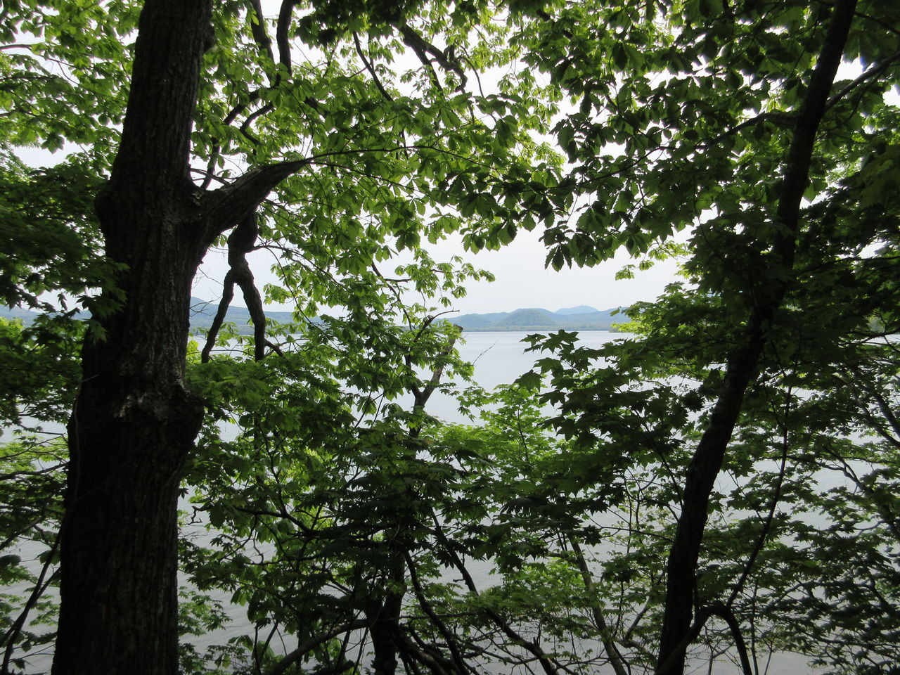 木々の間から見える屈斜路湖。さすがに広い!