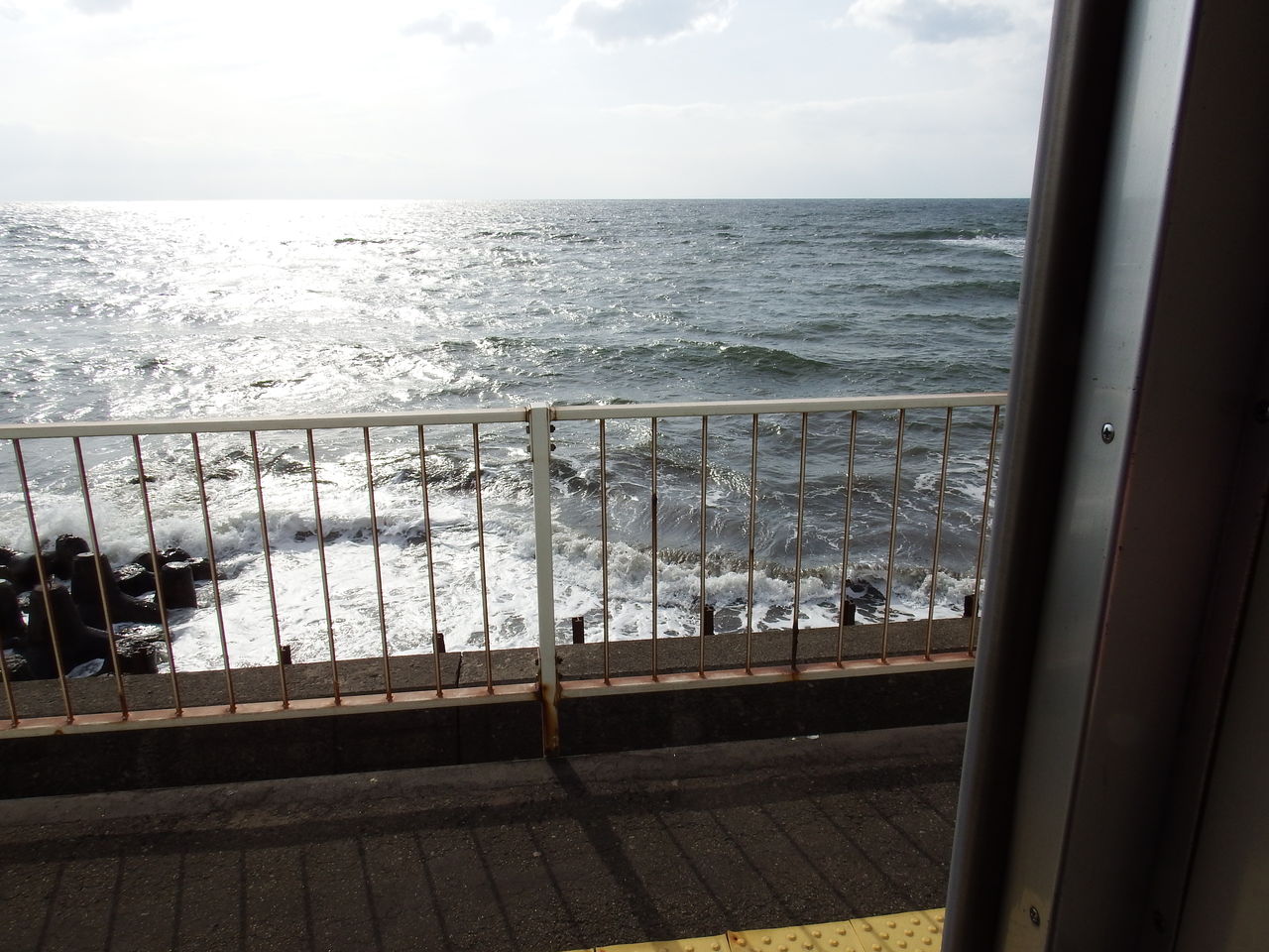 奥に海が見えますが、道路はまったくありません。列車しか到達できない駅です。