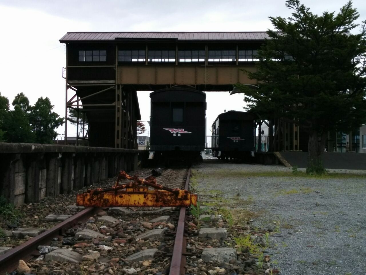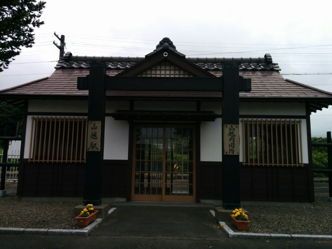 ここの駅の形は、北海道には珍しい瓦屋根の純和風の建物。実は、山越駅には関所が