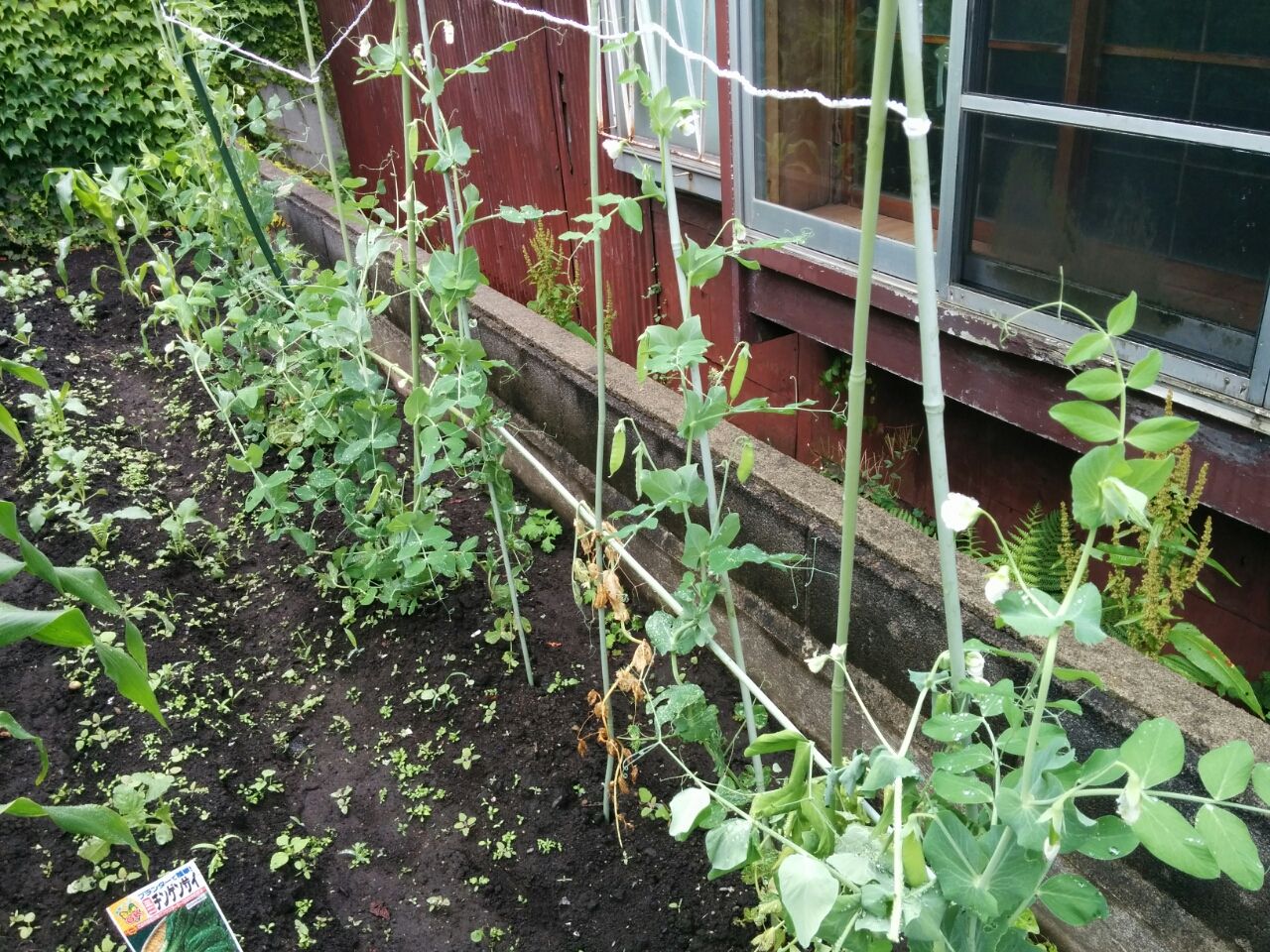 レタスなどとサラダにして食べています。 ユウガオはここ数日で大きく伸びてカーポートにくっつきそう。 ニンジンも成長してきて、間引いた葉は天ぷらやふりかけにして食べました。 エンドウ豆も花が咲いたあとに実が出来て、昨夜の味噌汁の具になりました。 ダイコンは、今年2回目。二毛作が出来ます。