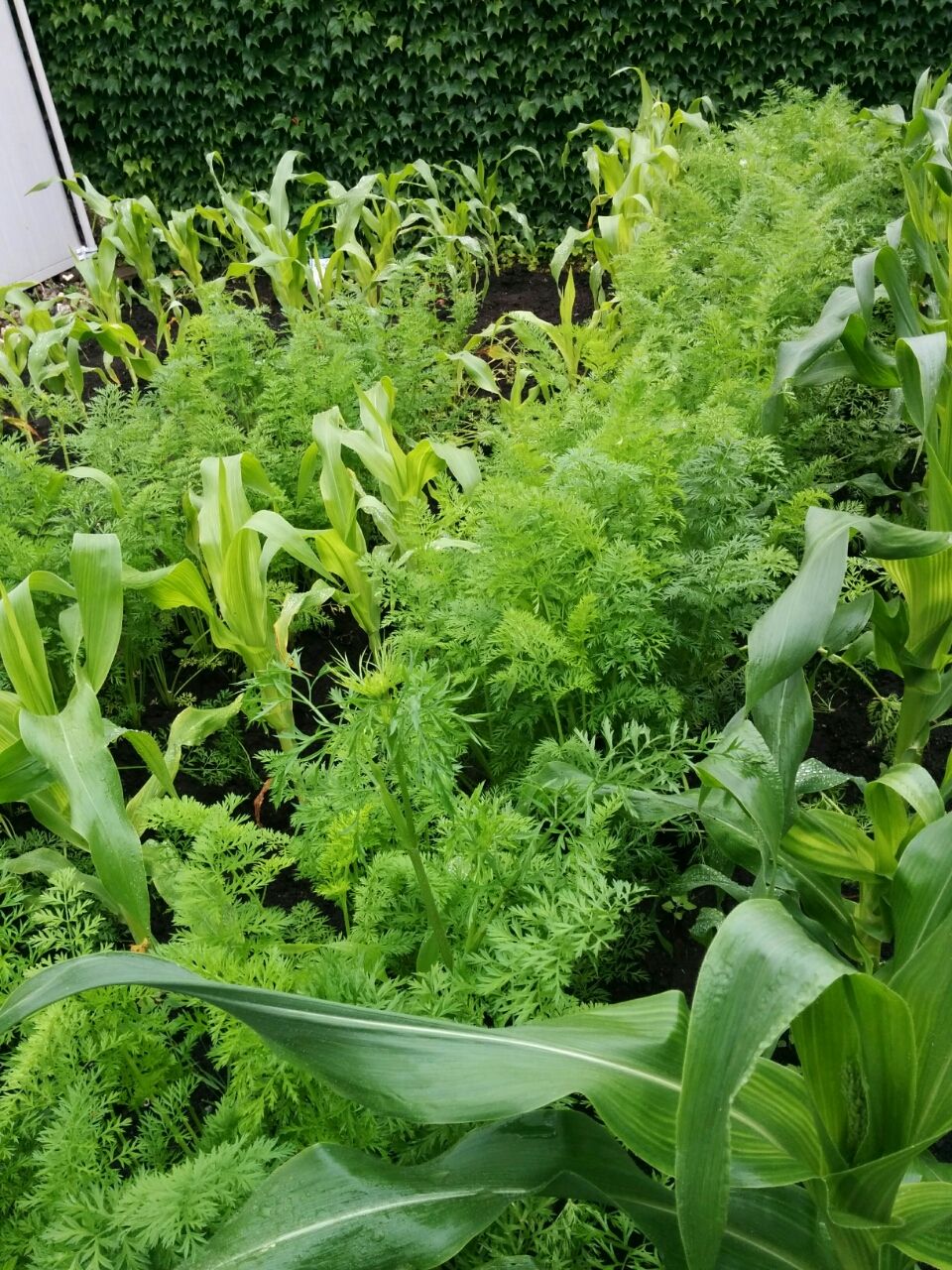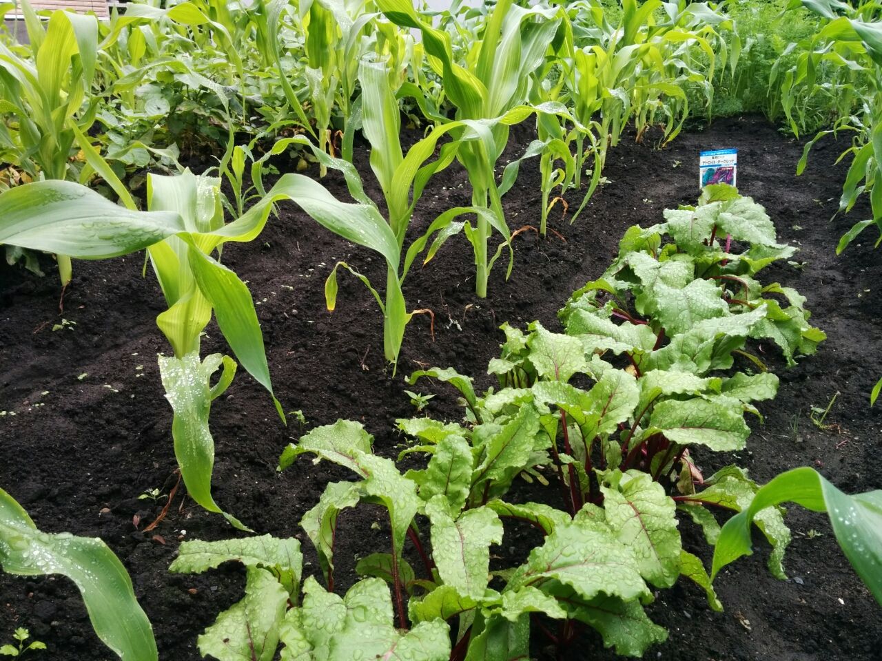 トウモロコシのとなりにある葉っぱは、ビーツで生で食べれる野菜。