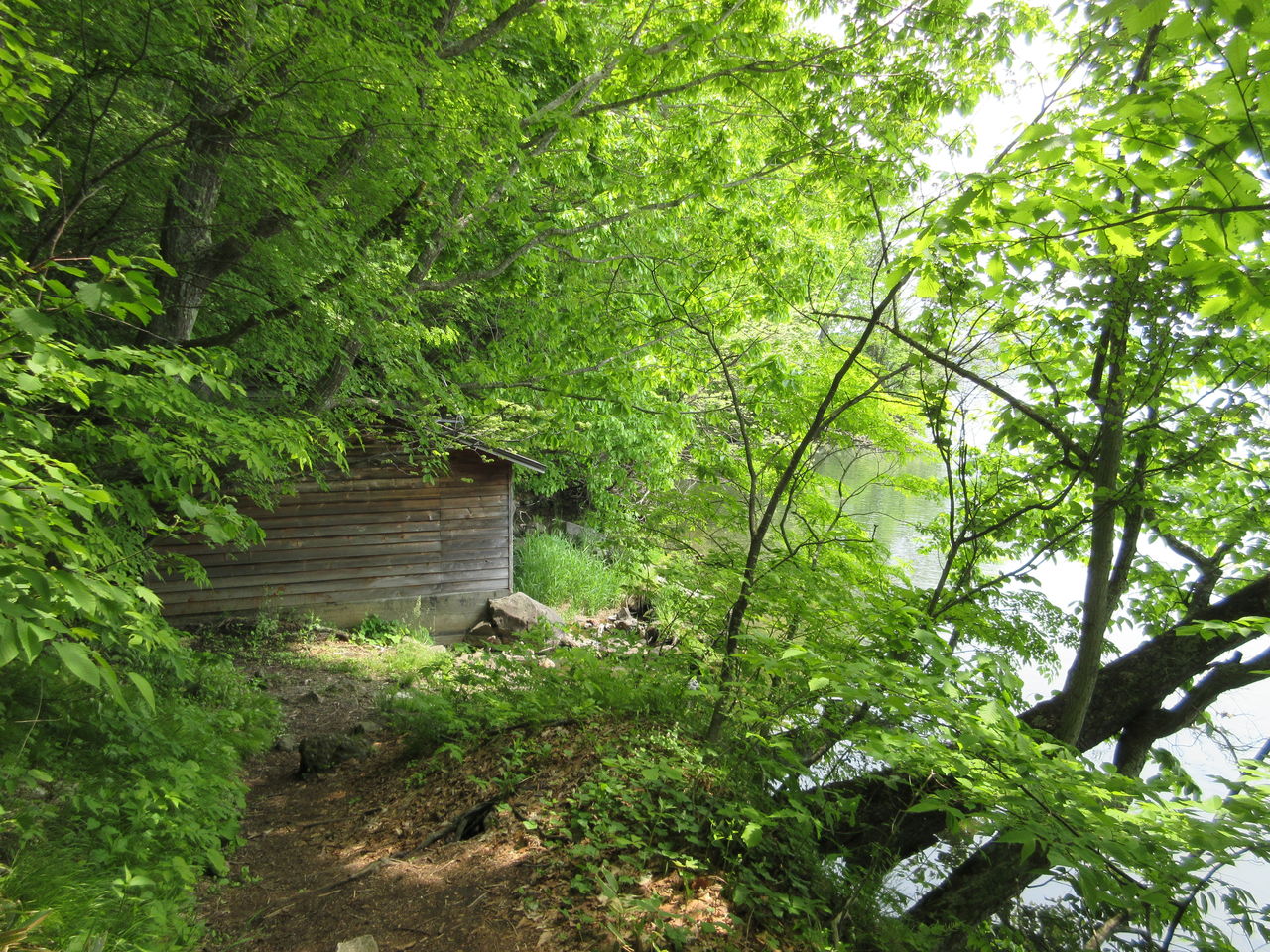 歩いていると、湖畔に木造の家がある。どうやらこの建物、温泉施設かな?