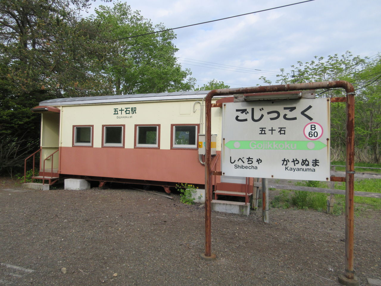 長万部駅の次の駅の中ノ沢駅。貨車改造の駅舎で、道内にはよくある形。
