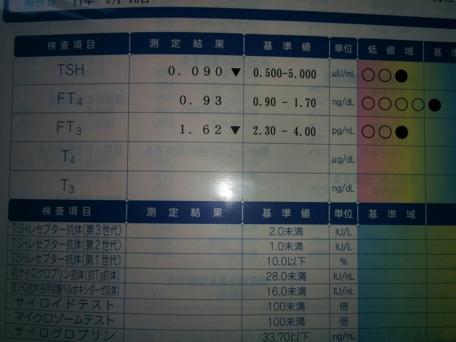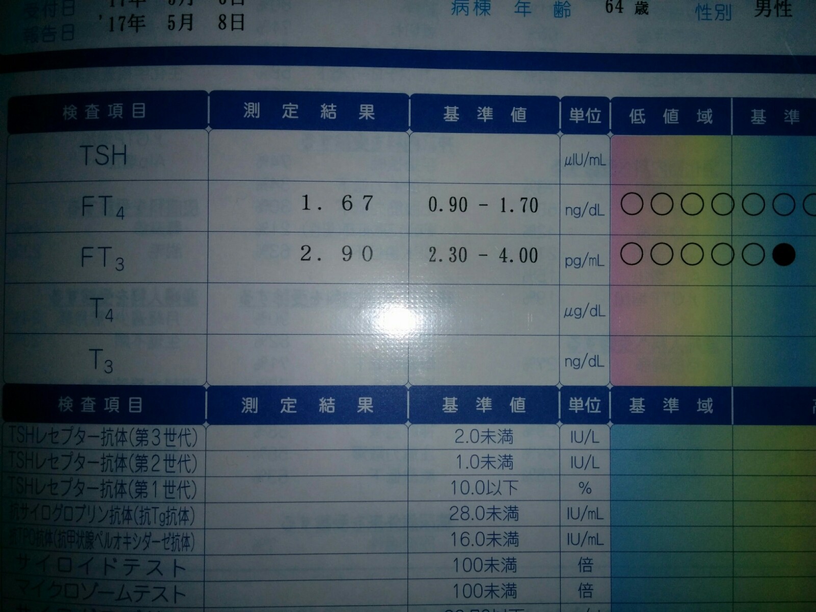 FT4は基準値内だし、FT3は少し低いけど⭕が2つ。