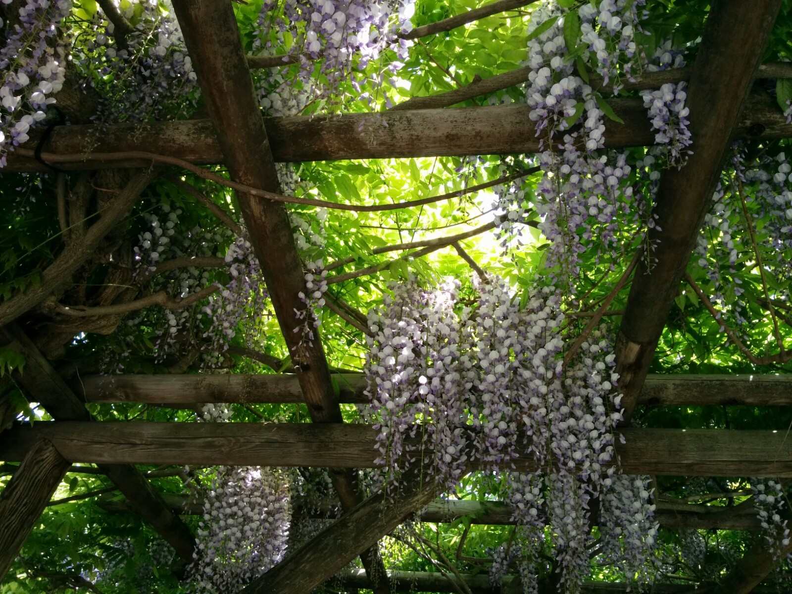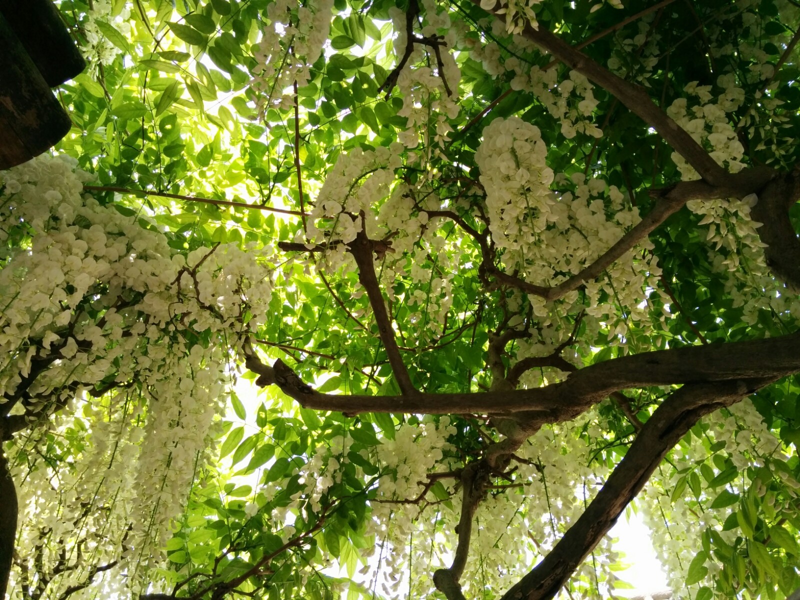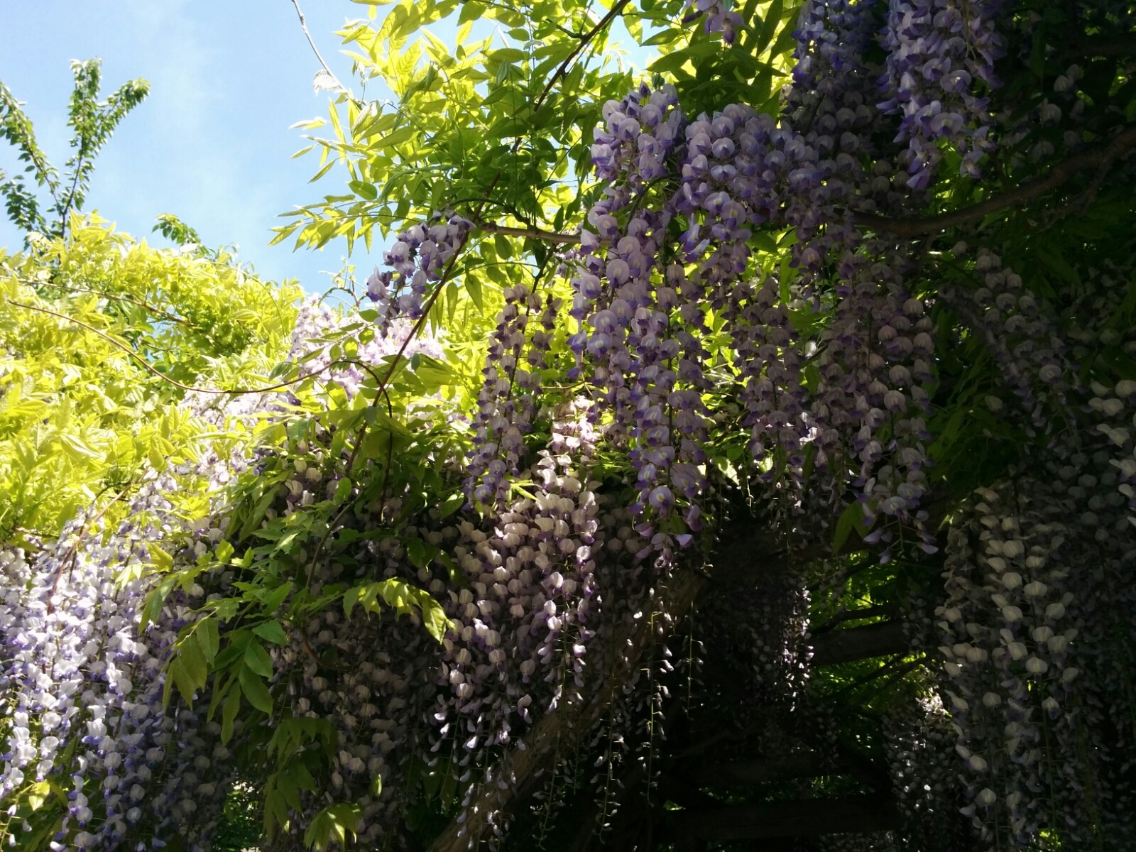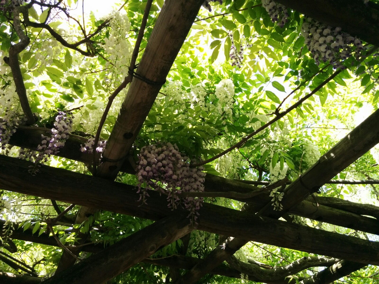 保健センターからの帰り、五稜郭公園ではちょうどふじの花が満開でした。紫色だけではなく、白色のふじもあって、とってもきれい!中国か台湾かの団体さんが、大勢来ていて大きな声で歓声を上げていました。それにしても、とっても良い香りがします。