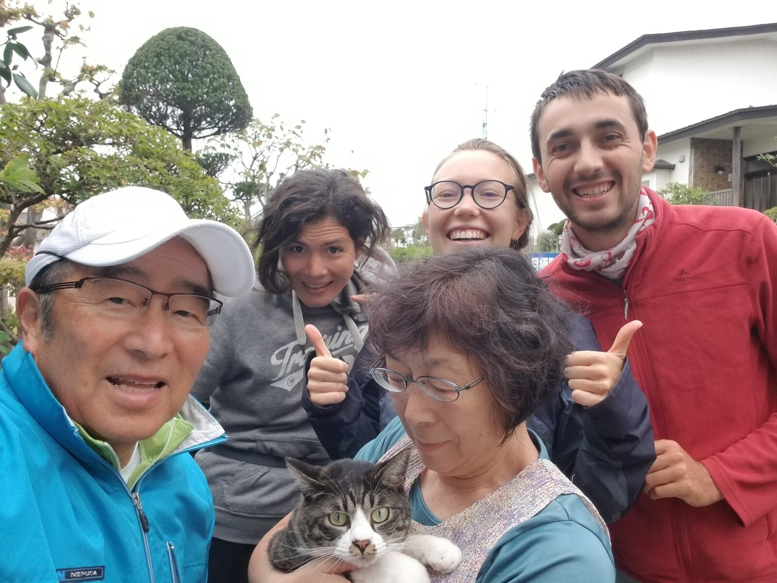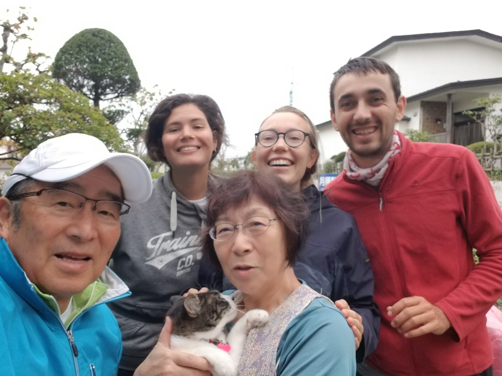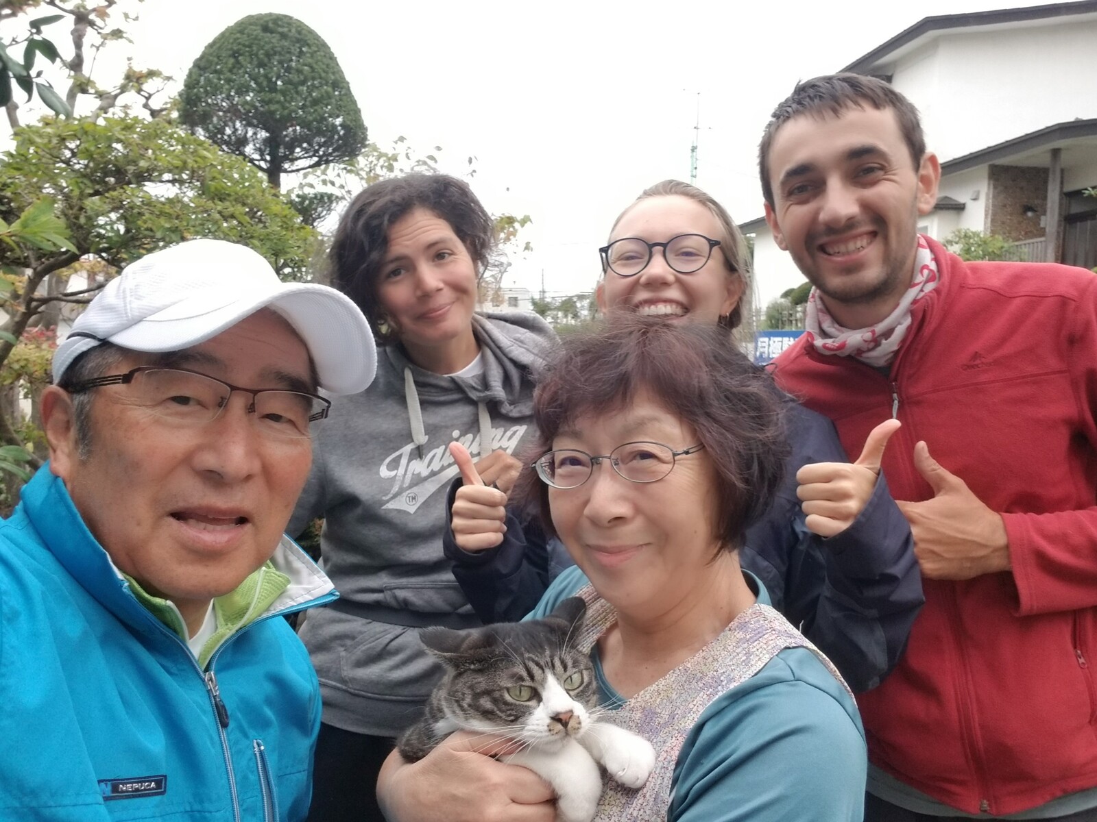 猫の「コタロー」も入れて、若い3人のフランス人冒険者たちと体の小さな日本人老夫妻。