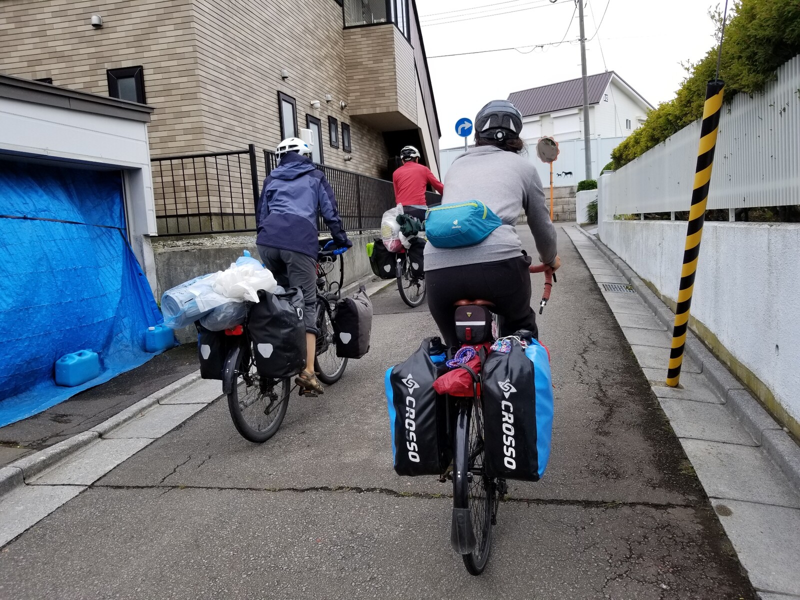 出発する前に、二人は炊飯器を貸して!と。何をするのかな?と思ったら、持参している5kgのお米(それを持って走っているだけでもすごい!)を出して5合分ご飯を炊きたいと。それで、おにぎりを作りお昼と夕飯にするとか。