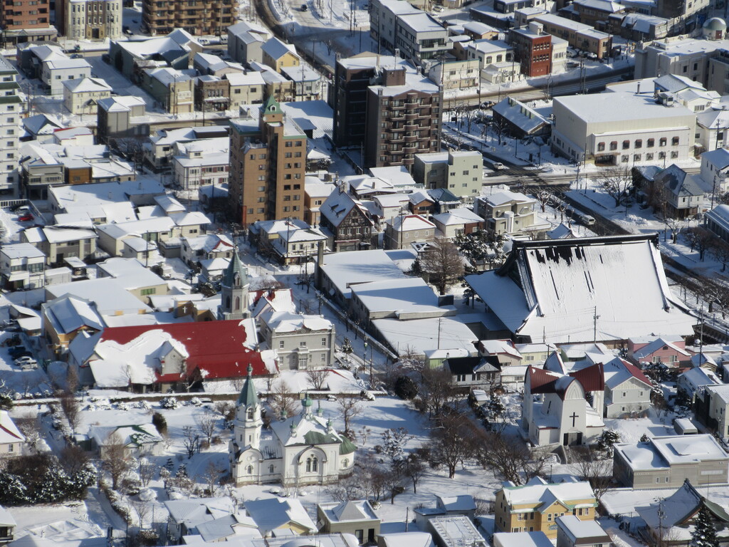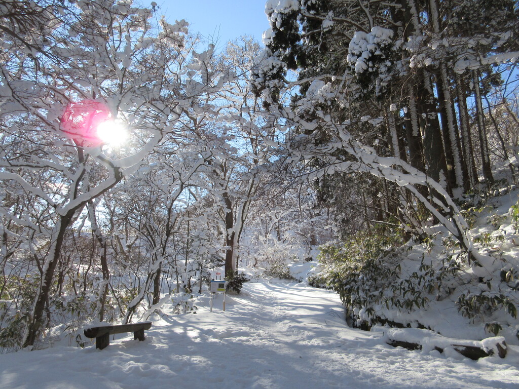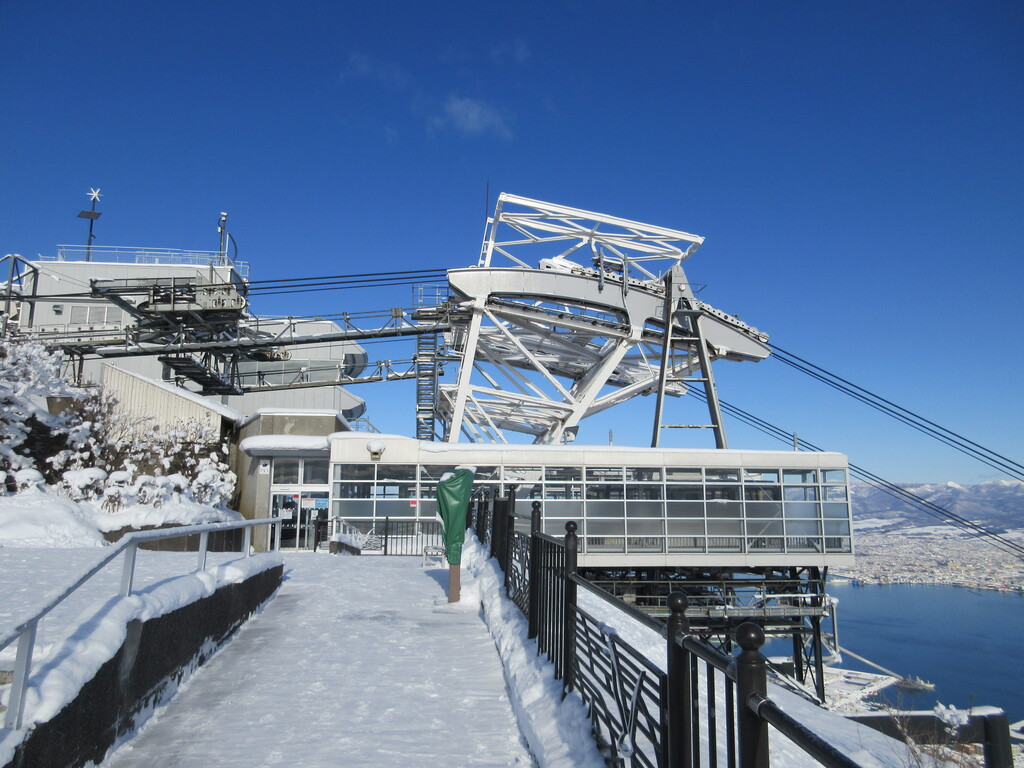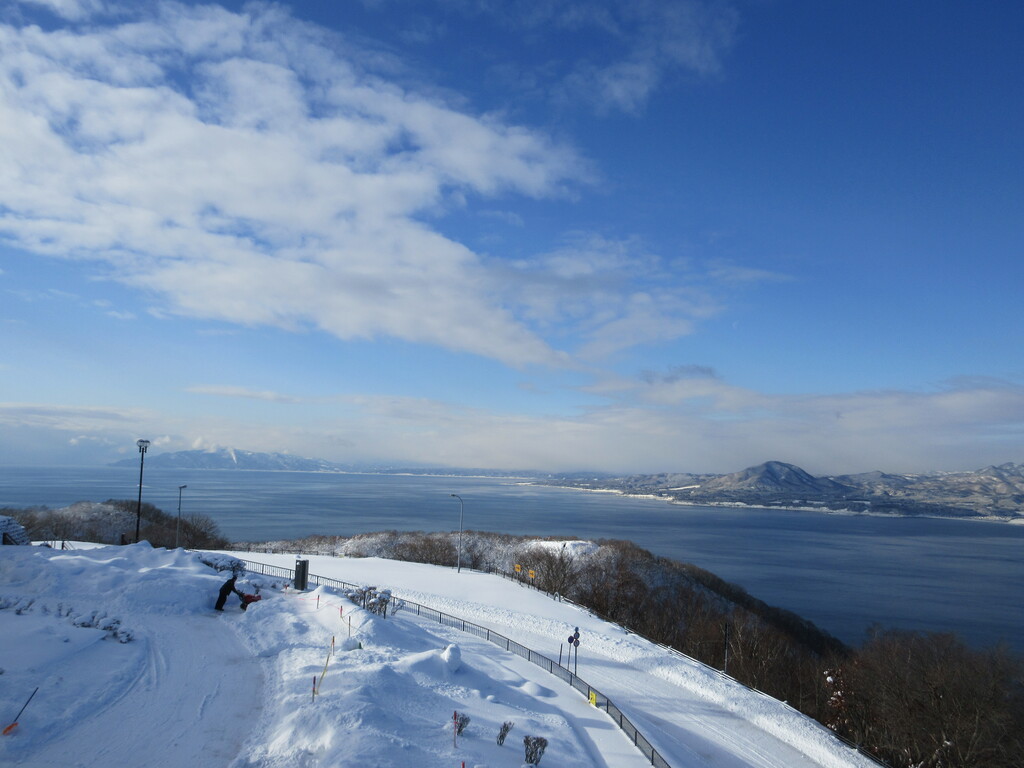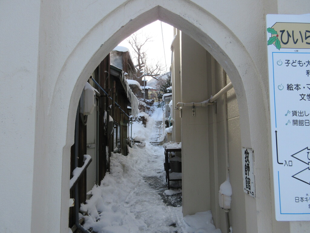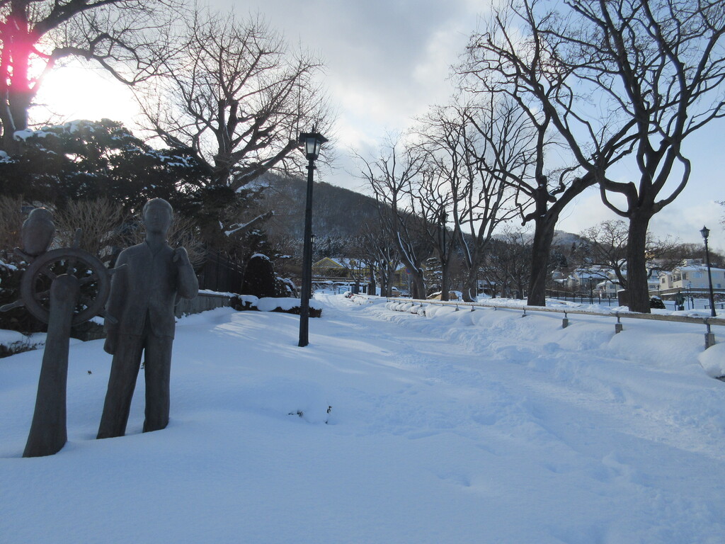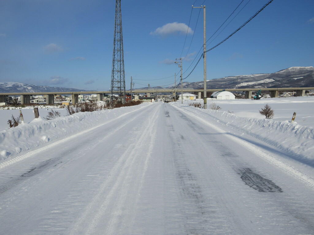 弥生坂を見ると、上の方がロードヒーティングされていて舗装路が見えているけど、下の方は積雪のまま。これは、上の方が急傾斜だからで車で上って行くのが大変なのでロードヒーティングしているのでしょう。坂の途中でスリップして上れなくなったら困りますものね。