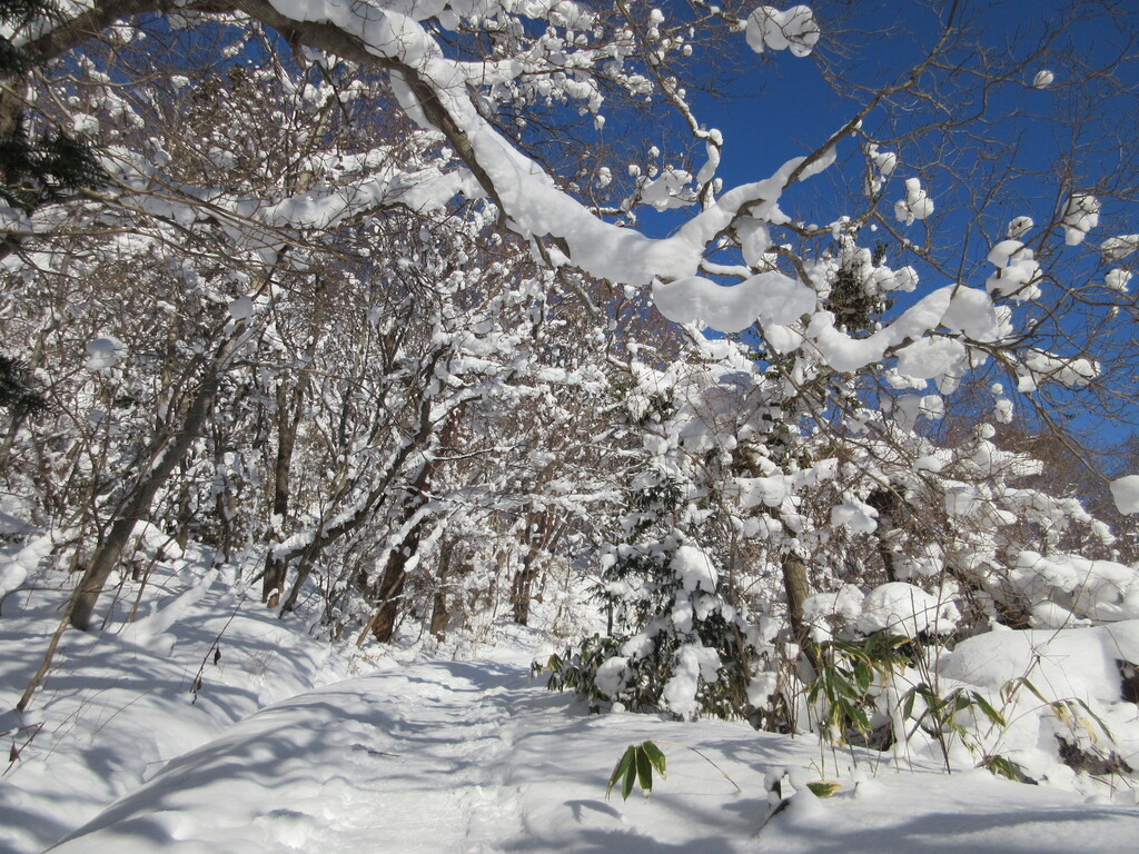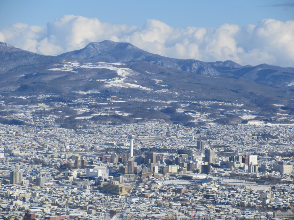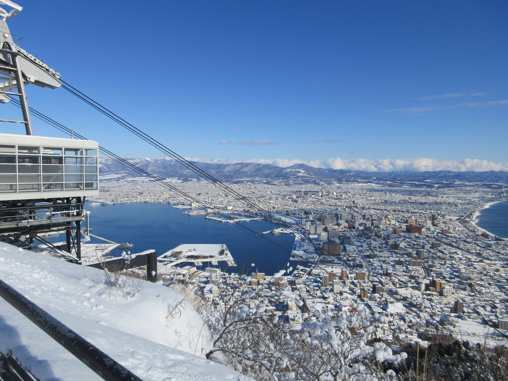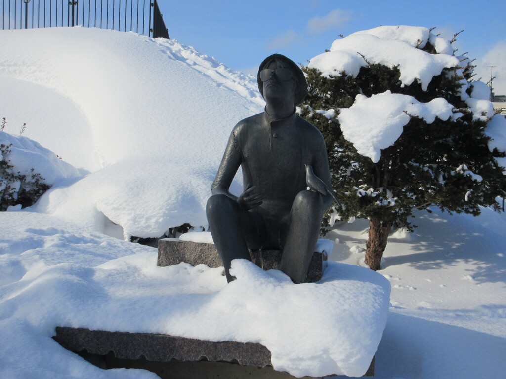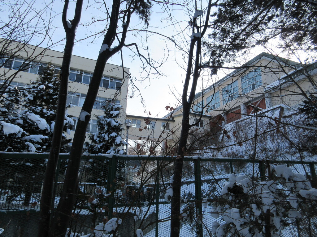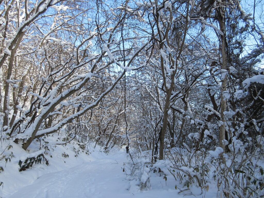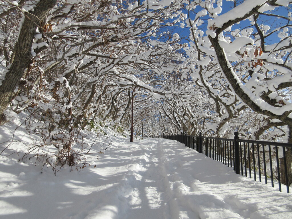 弥生坂を見ると、上の方がロードヒーティングされていて舗装路が見えているけど、下の方は積雪のまま。これは、上の方が急傾斜だからで車で上って行くのが大変なのでロードヒーティングしているのでしょう。坂の途中でスリップして上れなくなったら困りますものね。