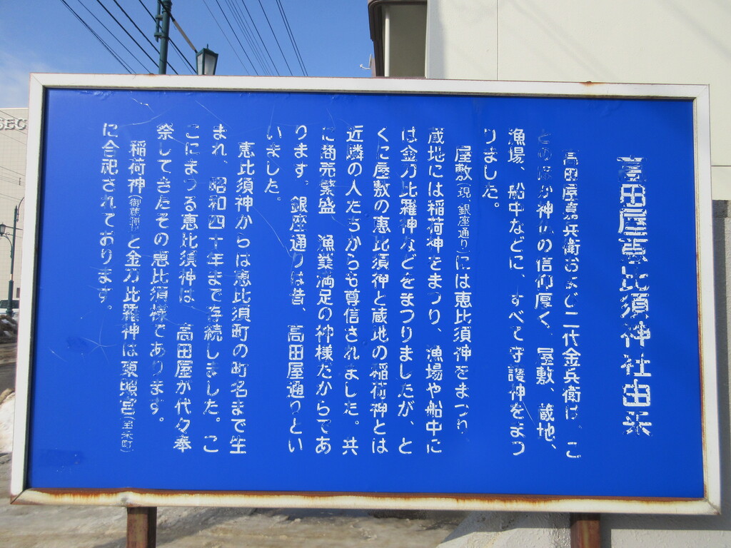 この日は、これで終了。帰りに、市電通りを歩いていたら「ペンションじょう蔵」の前に「高田屋本店跡」の石碑がありました。