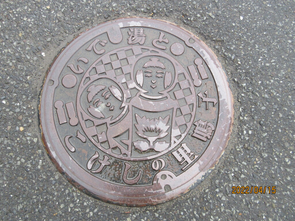 ここは昨日紹介した世界でもトップクラスの超酸性度の高い「潟沼」のある宮城県北部の大崎市鳴子(なるこ)温泉。マンホールは「いで湯と こけしの里 鳴子」。かつては鳴子町でしたが、平成の大合併で2006年3月31日、周辺の松山町、三本木町、鹿島台町、岩出山町、田尻町とともに古川市と合併して大崎市へとなったのでした。行政の中心地は旧古川市にあります。