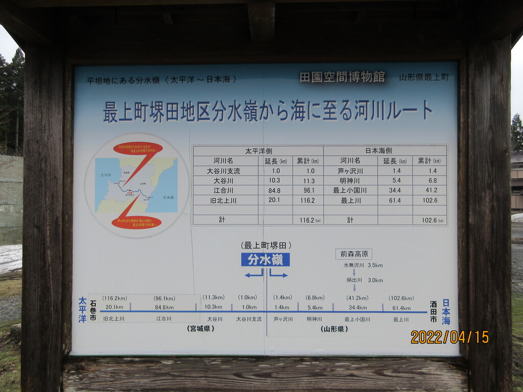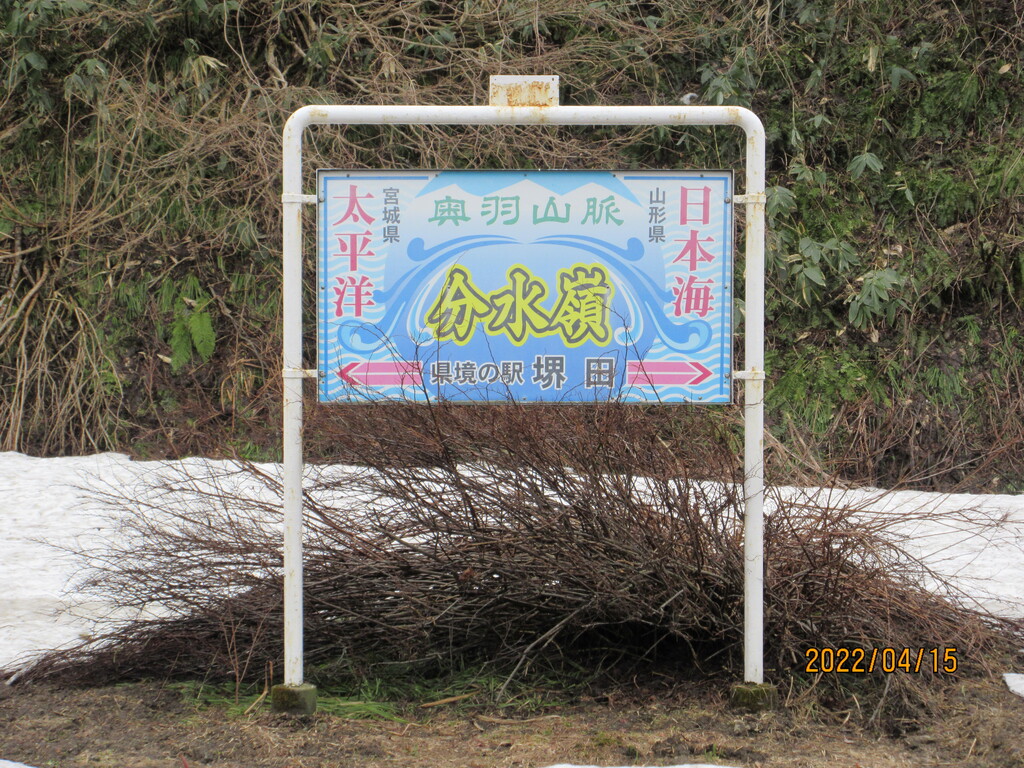 駅の看板も「奥羽山脈 分水嶺」とあります。