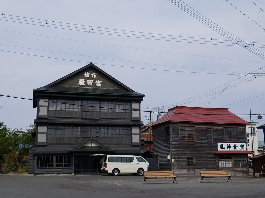 で、ここは引き返して国道を降りて向かった先は、まるで江戸時代のような温泉街。木造の3階建てや5階建ての旅館が立ち並ぶ古風な地でした。