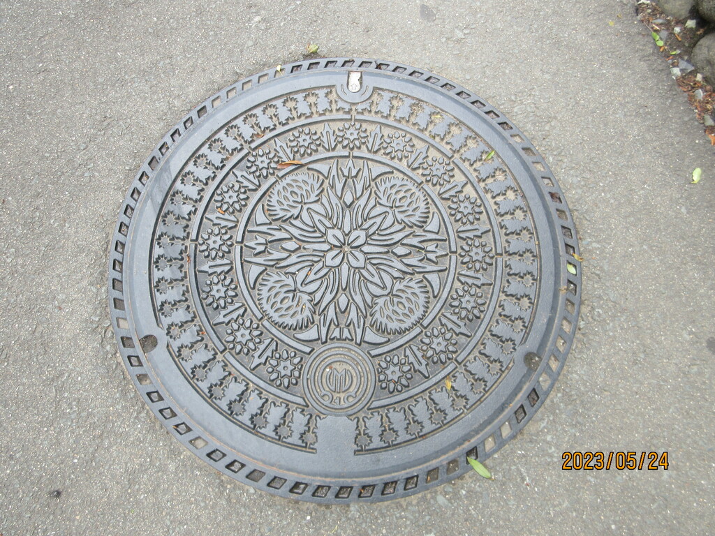 マンホールを見たら、山形市の文字もないし、山寺を想像する絵も無し。何処のマンホールかは分からない図柄です。