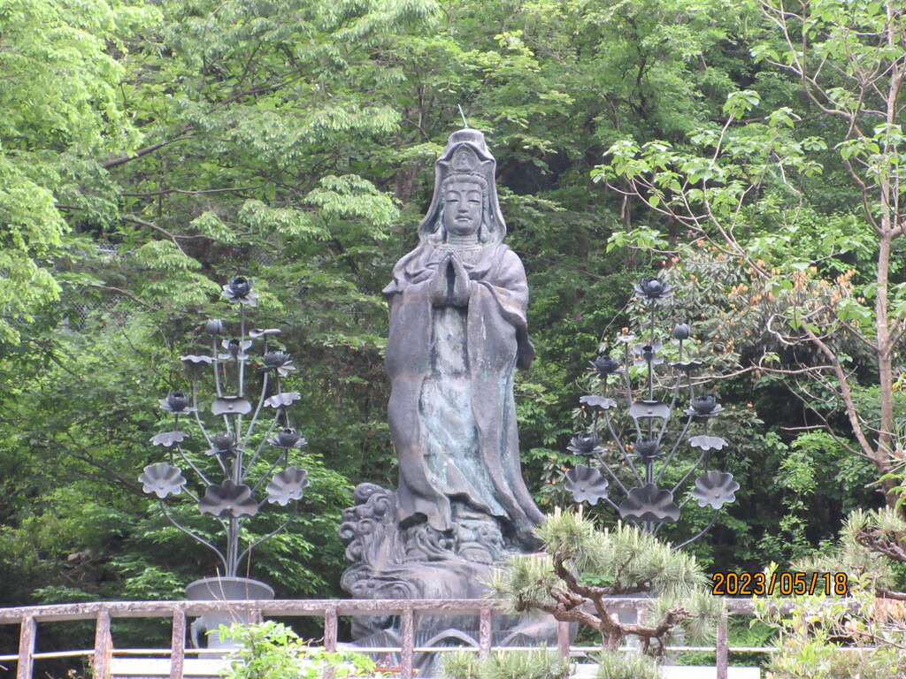 対岸の岩山には、修行者のお堂も見えていますが、我々は立ち入り禁止で行けません。
