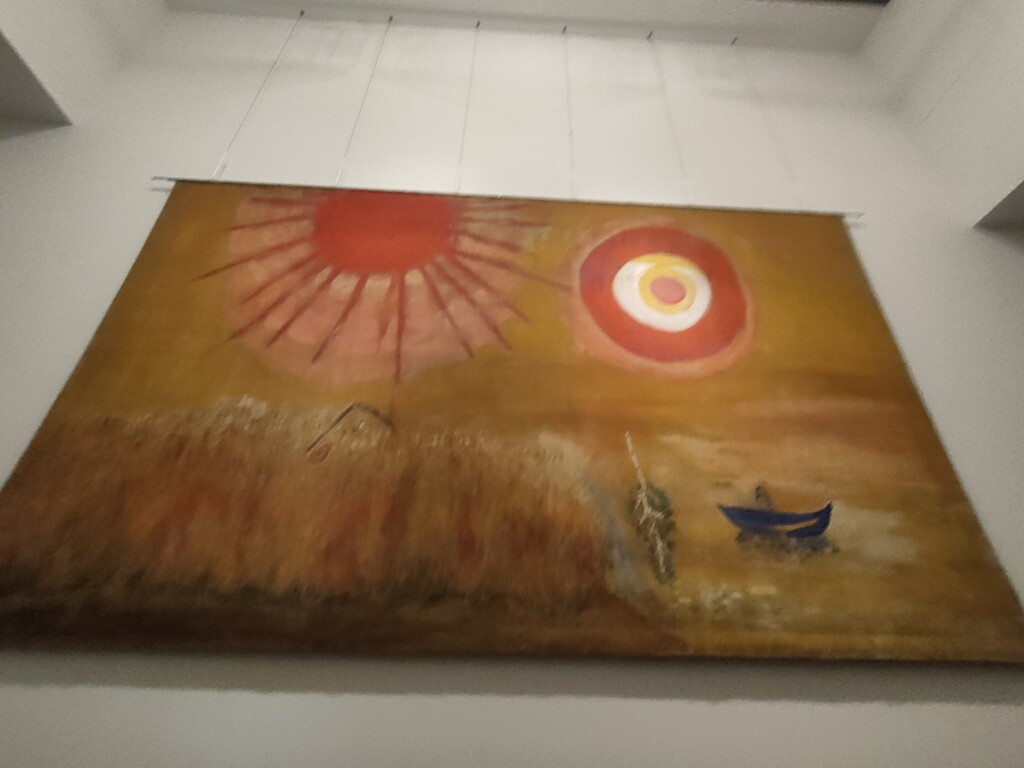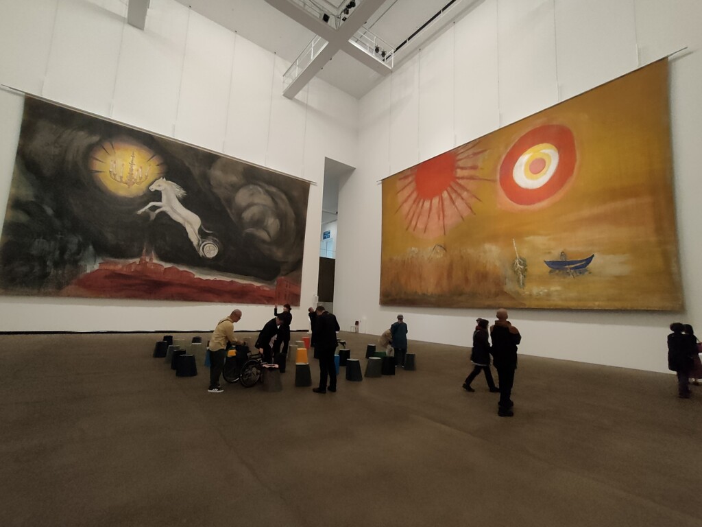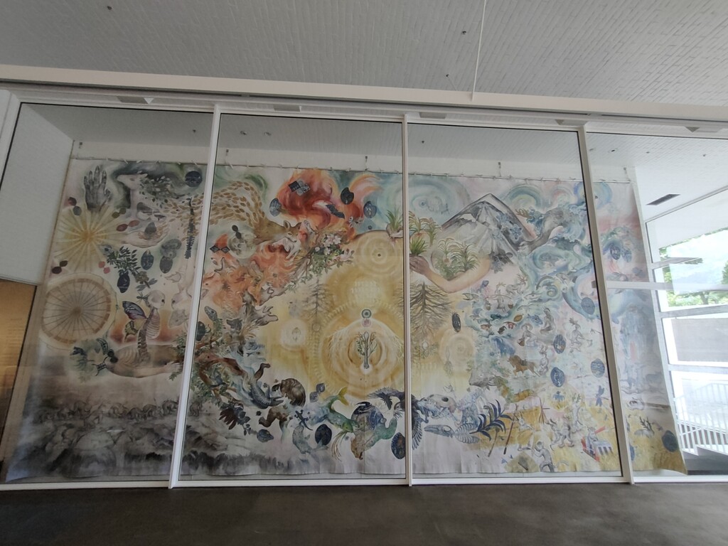 まずは、大ホールみたいな空間に四面にあるタペストリーのような布地の絵画。