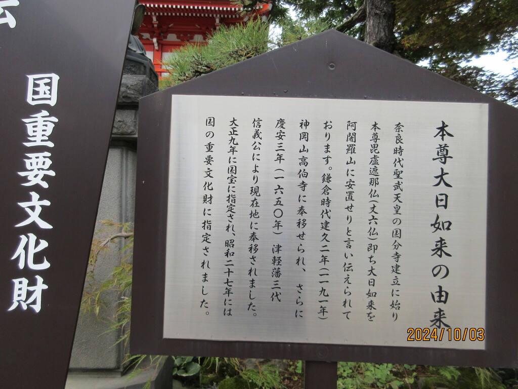 本堂には国の重要文化財に指定されている大日如来が安置されているとか。