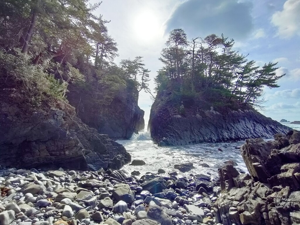 さて、岩手県二戸市浄法寺町の天台寺を見学の後、太平洋側へ出て久慈市の小袖(こそで)海岸へ。