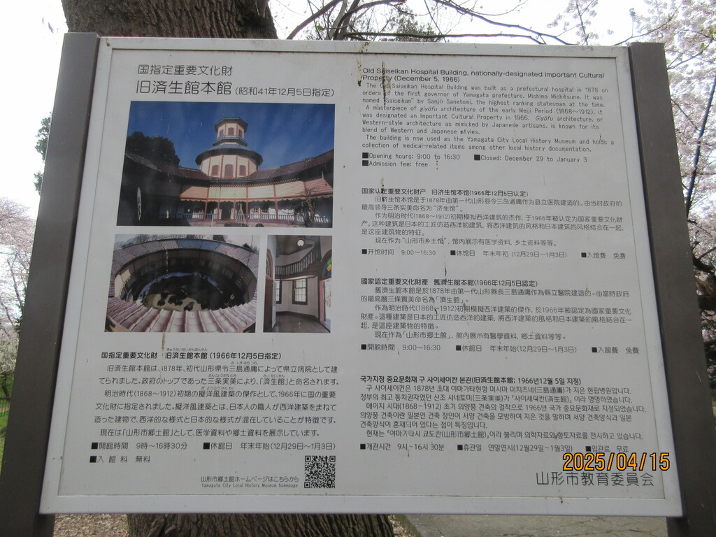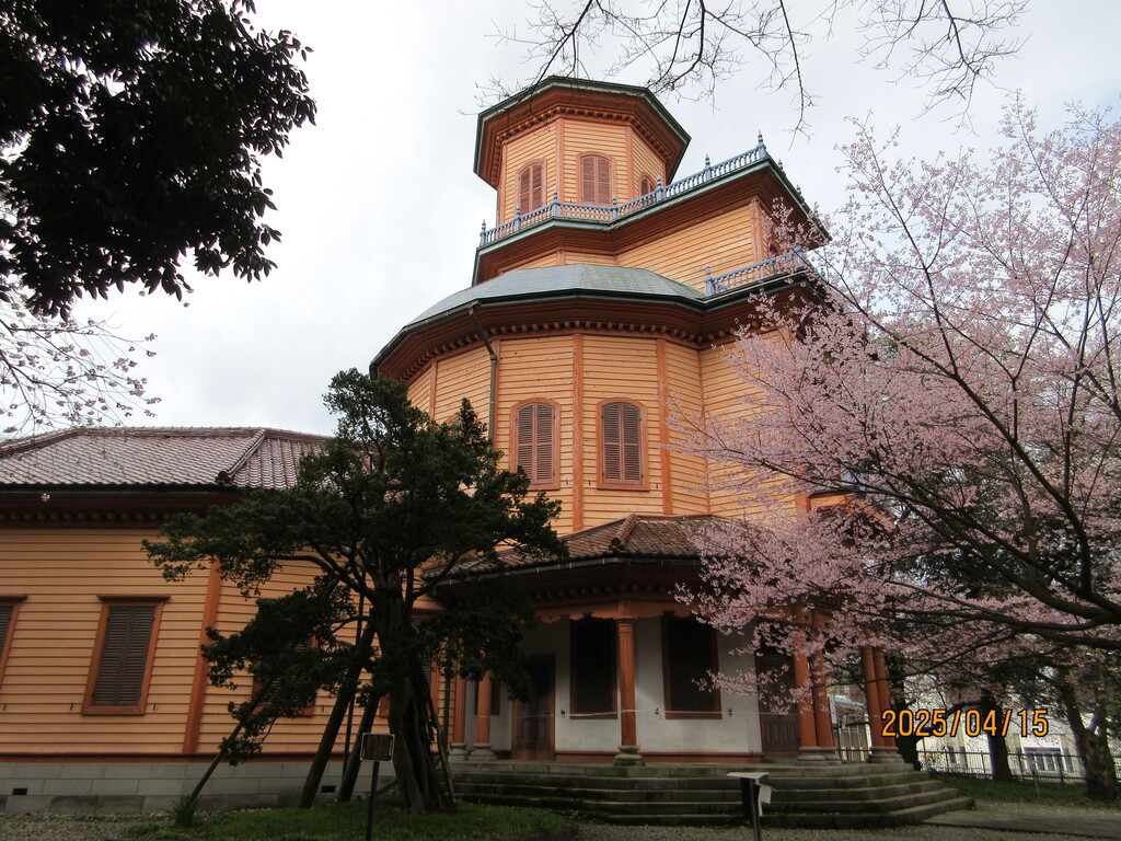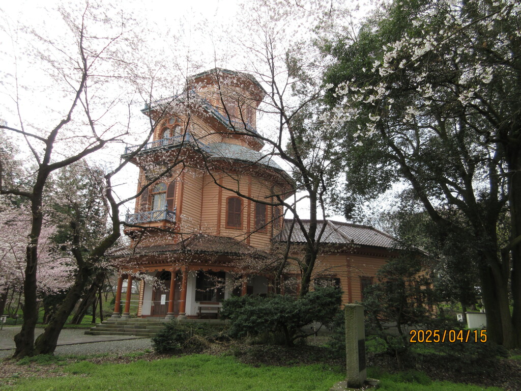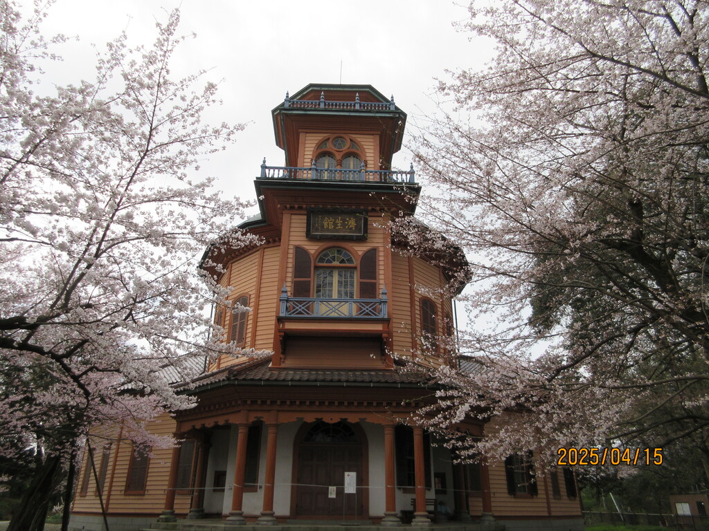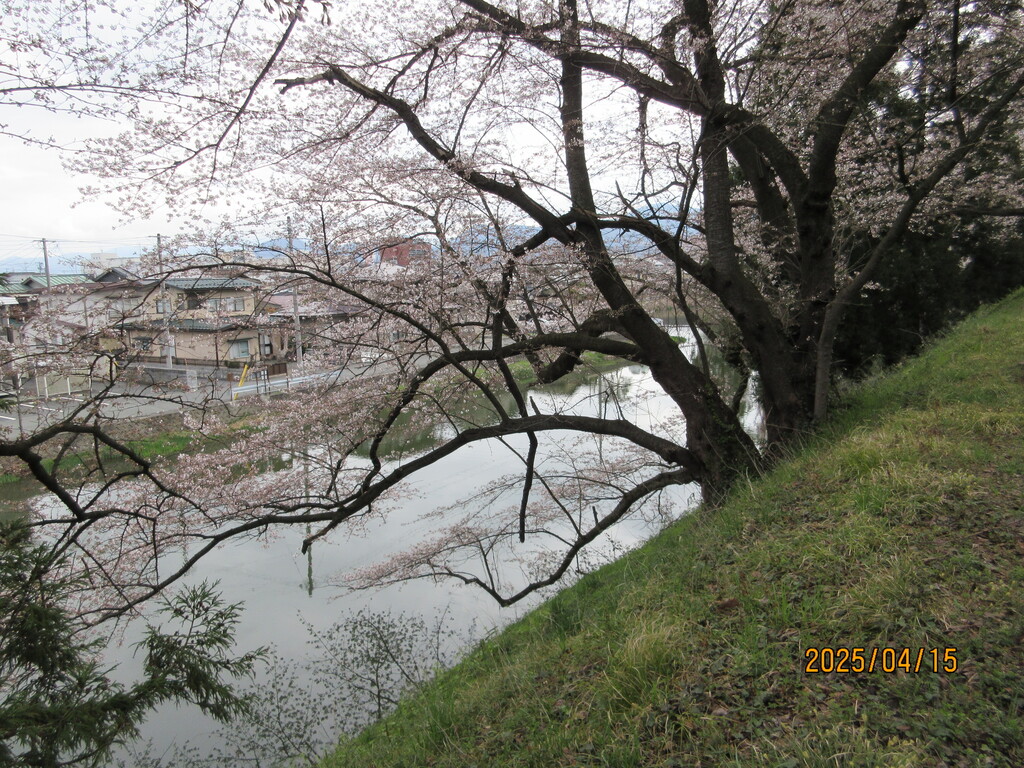 真下には地元住民が毎日掃除している清潔なトイレとピンク色のポスト、それとバス通学するための子供たちの待合所があります。桜が満開できれい!