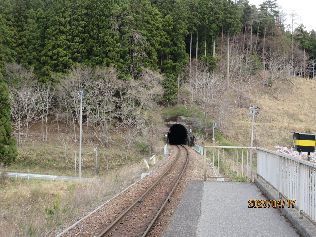 北は釜石駅方面。トンネルとトンネルの間に恋し浜駅があるのです。