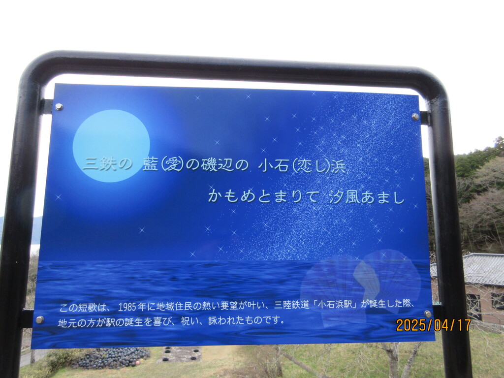 さて、ここは岩手県大船渡市小石浜地区。三陸鉄道の恋し浜駅へ来ています。当blogでは何度も登場している駅ですのでご存知の方も多いはず。