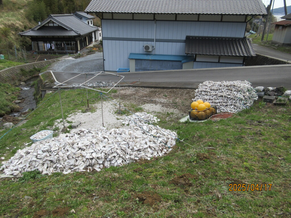 ホタテのに穴を開ける作業していますね。昨年訪れた時には女性の方が作業中でしたが、今はお休み中かな?