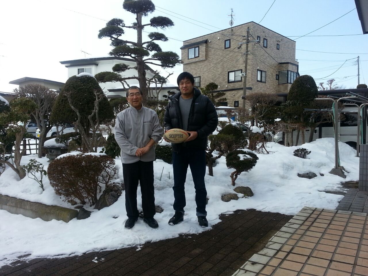 ラグビーのトップリーグで今シーズン6位になったヤマハ発動機のキャプテンをしている笠原雄太(私の甥っ子になります)が、我が家に寄ってくれました。