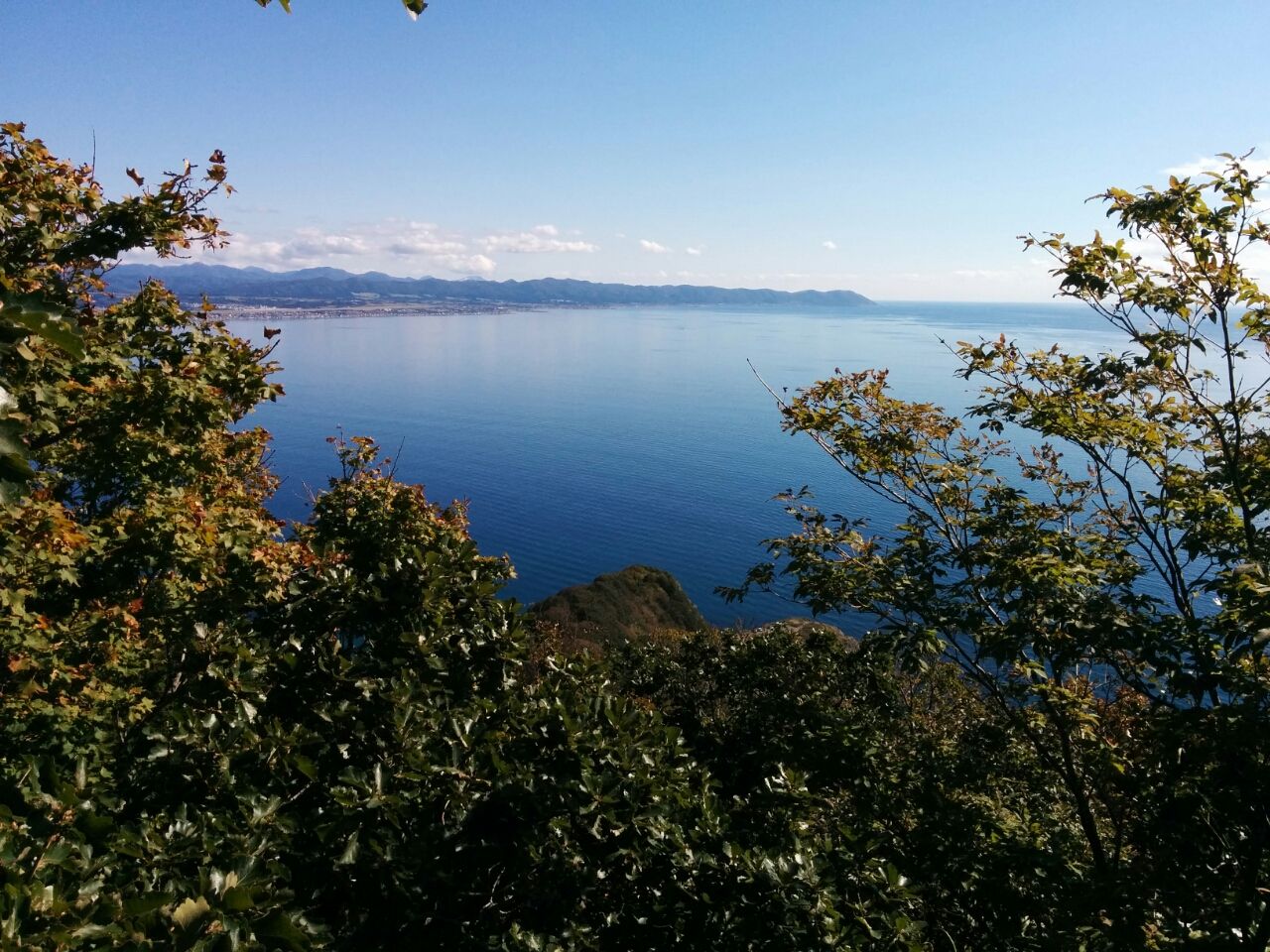 大森浜と東へ伸びる亀田半島。恵山方向だ。