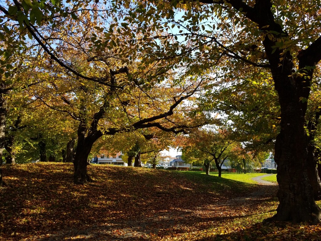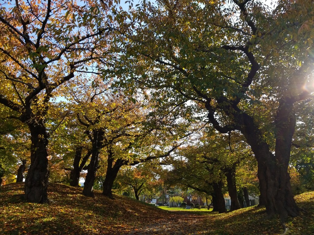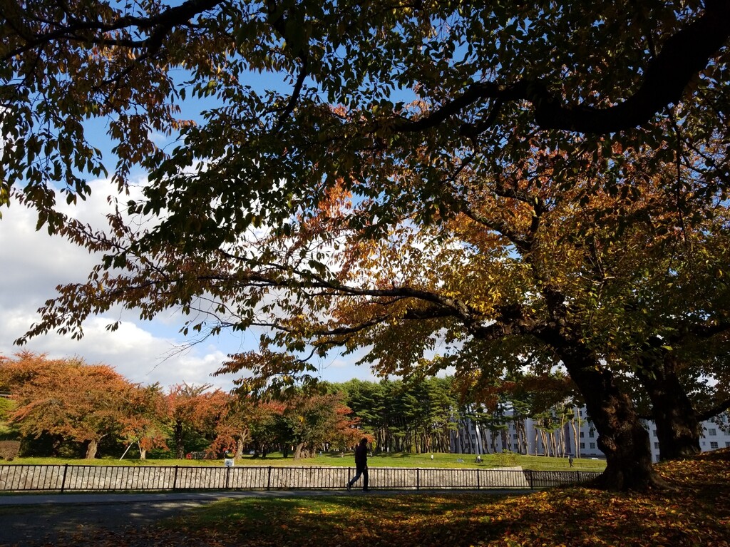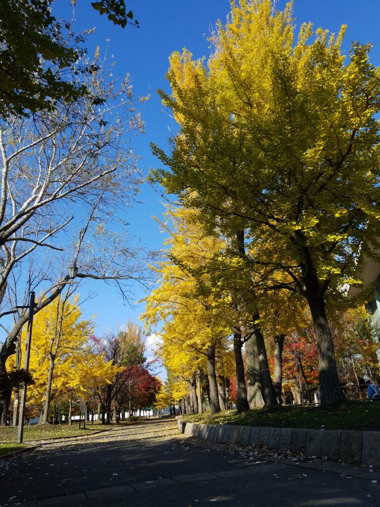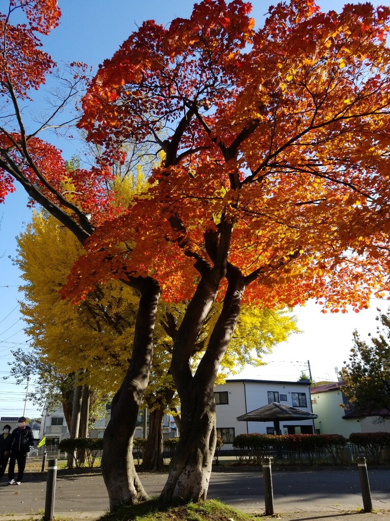 まずは、千代台にあるスポーツ施設が集中している場所へ。ポプラと銀杏の紅葉が素晴らしい!青空に映えますね。