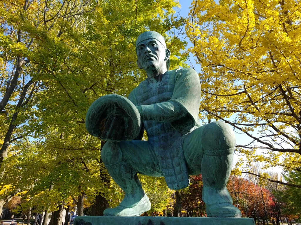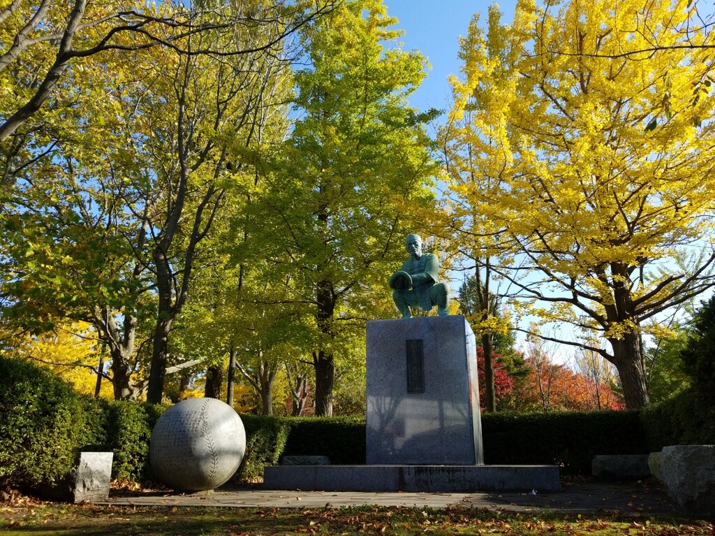 オーシャンスタジアムの外に球聖「久慈次郎」の像があります。