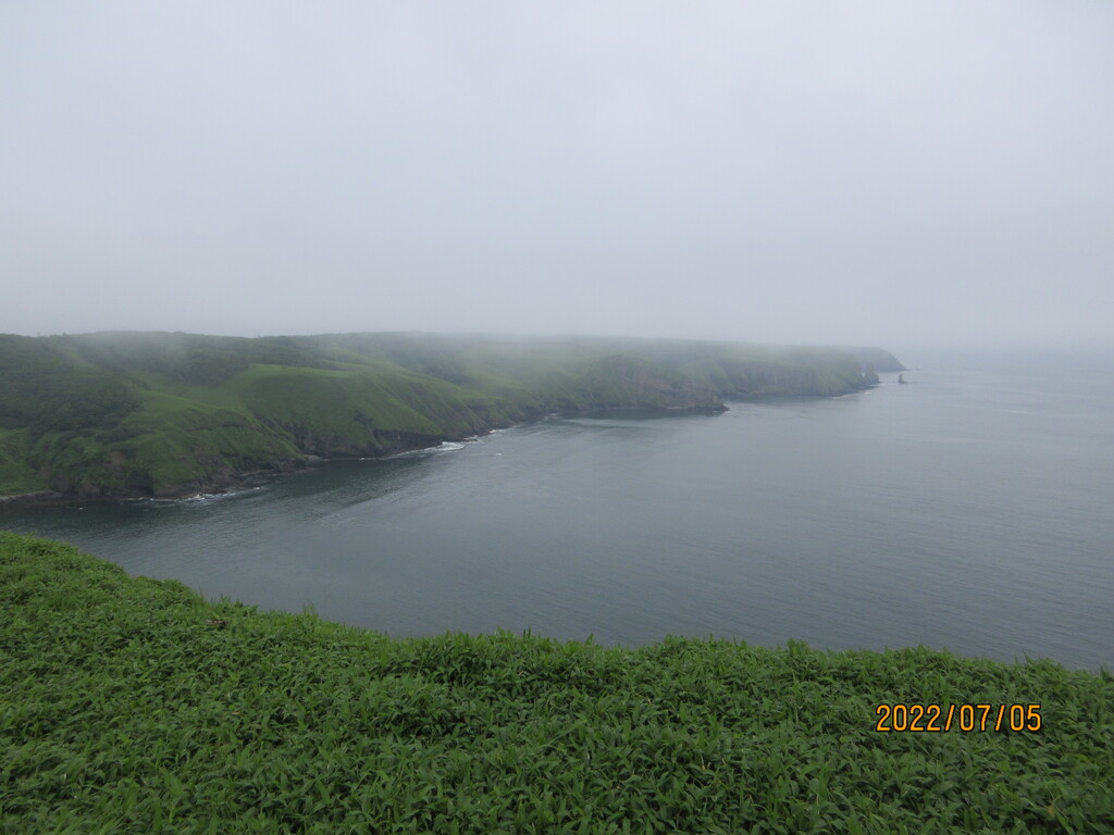 ガスって来ましたね。この辺りは寒流の千島海流が流れて、海水温度は冷たい。陸地は7月だから太陽に照らされて地面の温度は高い。その差はかなりあります。まるで、冷凍庫を開けた直後もガス(雲)が出るように、ここでも同じようにガスっているのです。
