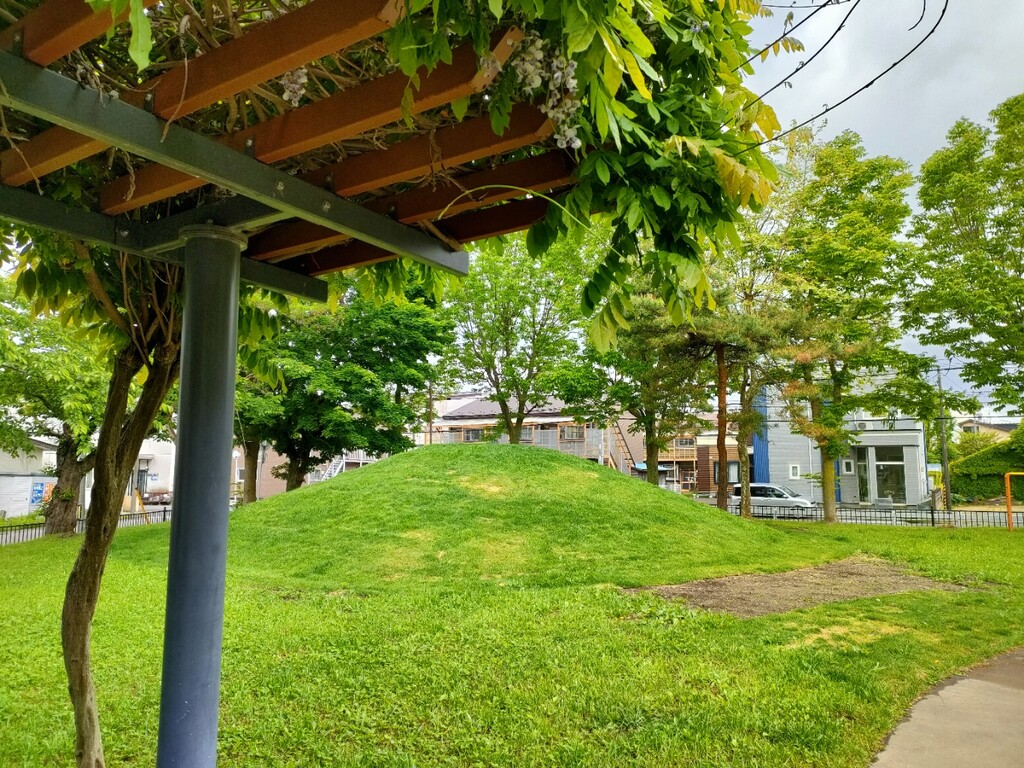 帰り、鮫川公園へ行くと、緑の小高い5mほどの山が完成していました。