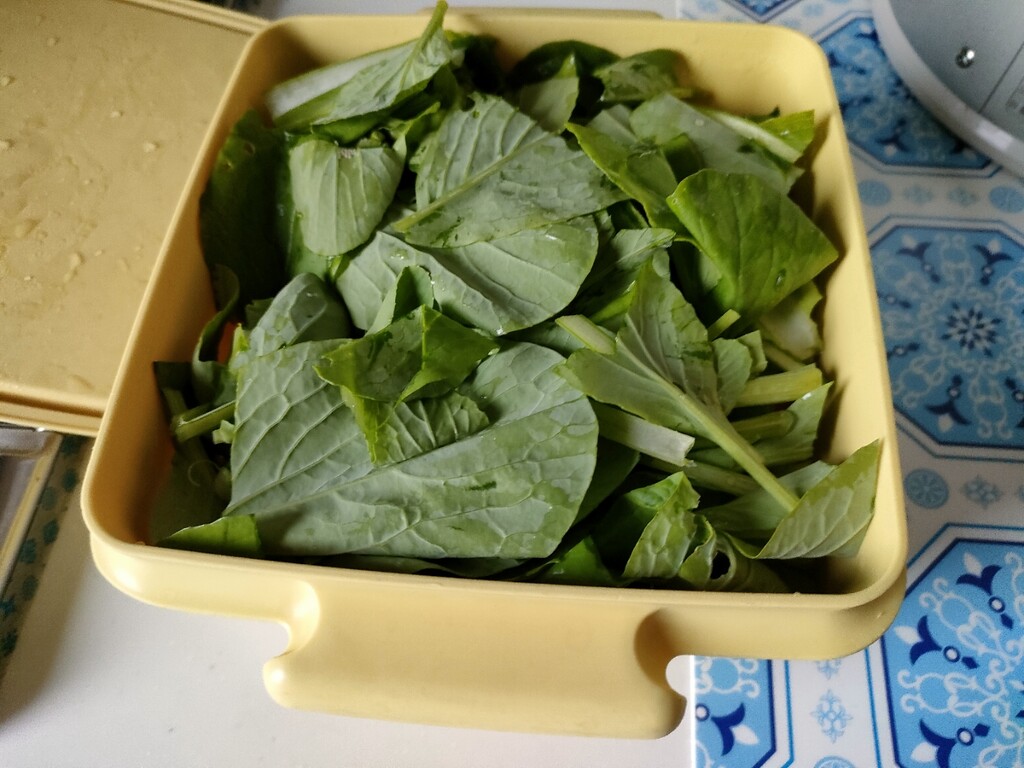 さて、我が家の野菜の収穫が始まり、その第1号として、小松菜を料理しました。