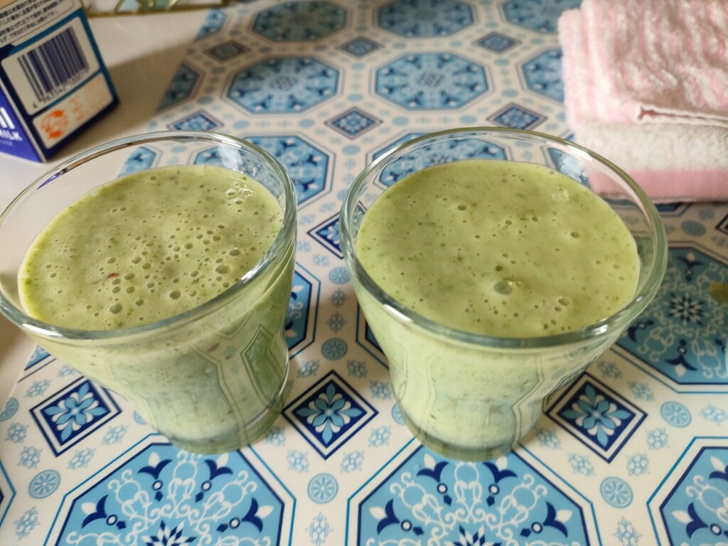 その結果、新鮮で栄養たっぷりのスムージーが完成。毎朝、取り立ての小松菜など野菜を使って飲んでいます。