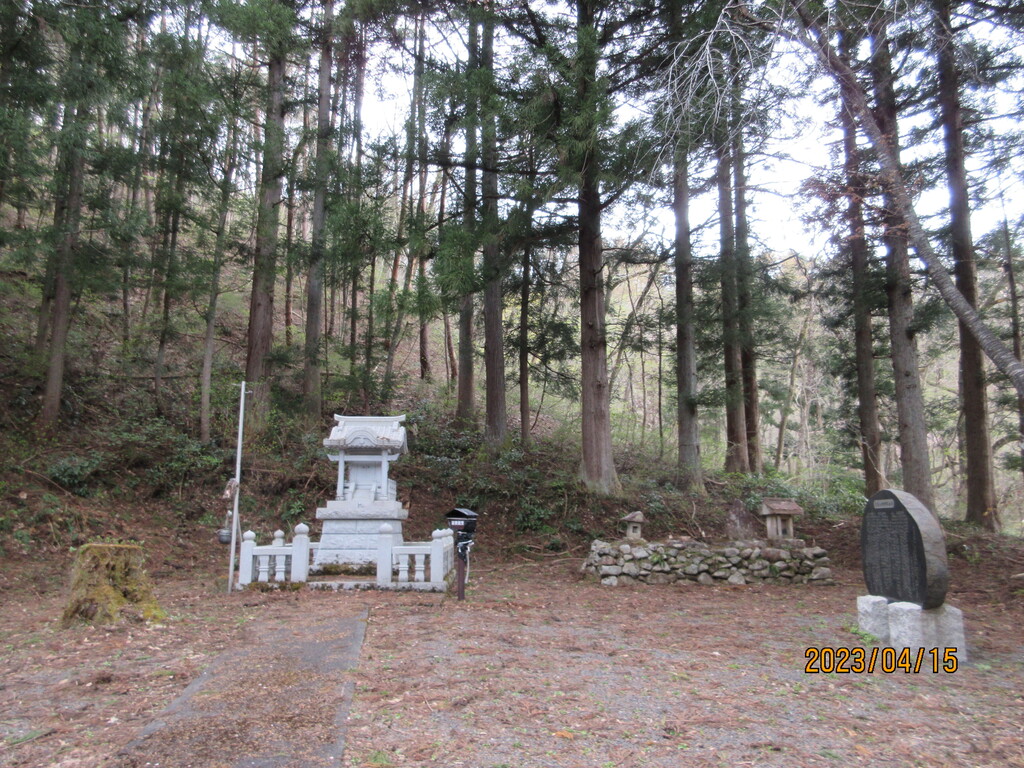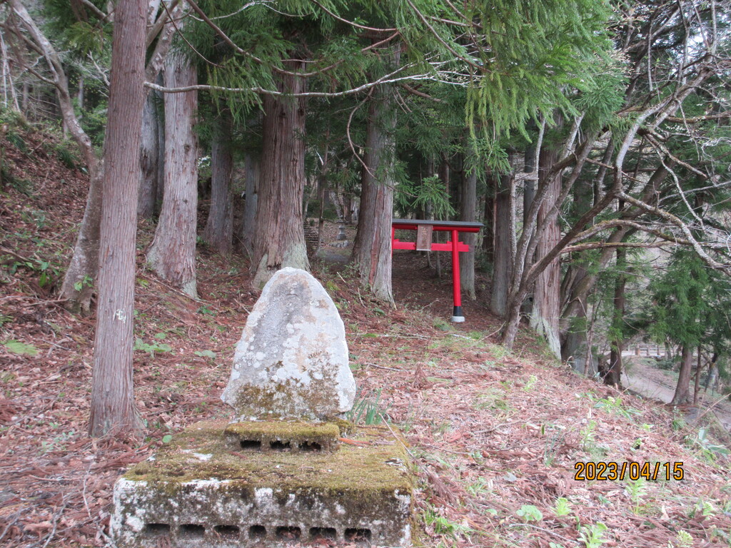 祠は大滝山神神社という名です。石碑を読むと、かつては宿場町として賑わっていたが、道路の開通による車社会の到来で廃れ、かつては小学校もあり集落も100軒以上あったが、まったく無人となったことが書かれていました。