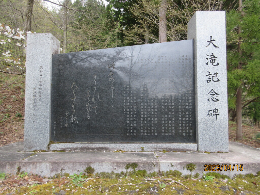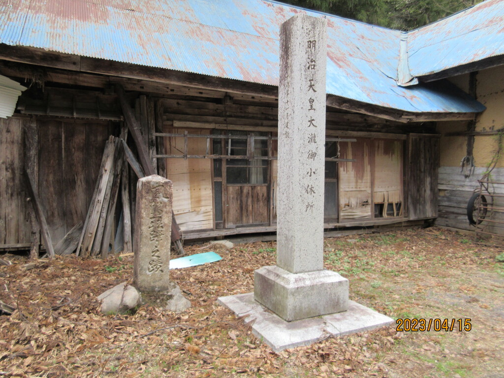 しばらく道を進むと、明治天皇が大滝にやって来て、小休憩した場所もあります。