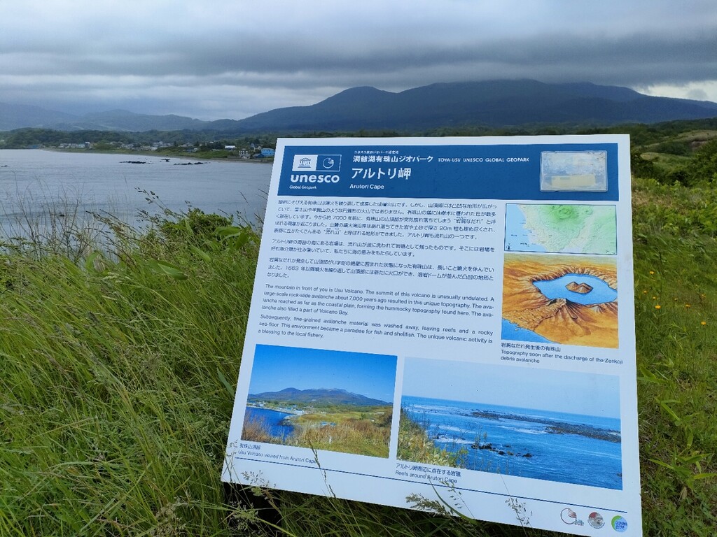 さらにアトルリ岬へ。有珠山の溶岩流で出来た岬です。晴れてれば有珠山が見れるのに、残念です。