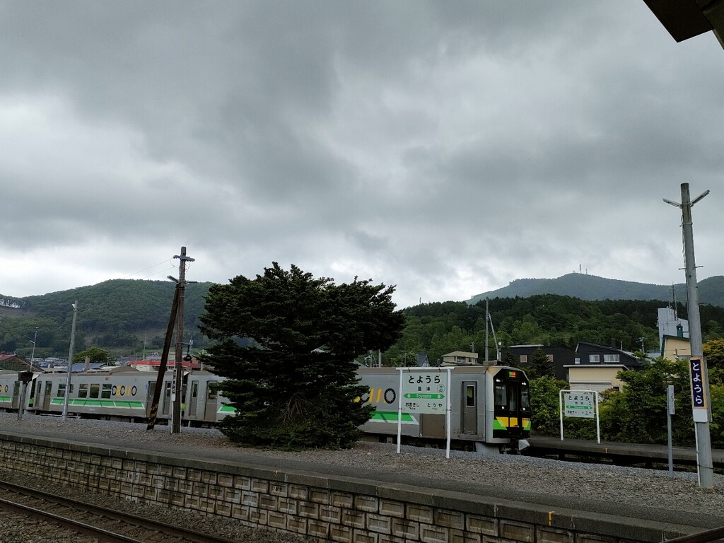 まずは、豊浦駅へ。昨夜車中泊したしおさい温泉の広大な駐車場から1kmもない場所にあります。