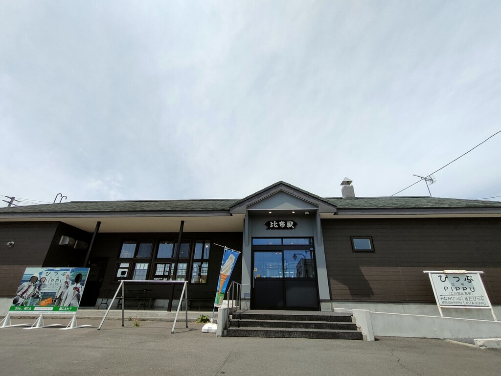 まずは、旭川市の隣町の比布町へ。ピップエレキバンで有名になった比布駅です。左に顔出しパネルがあって、若いカップルが写真撮りしていました。