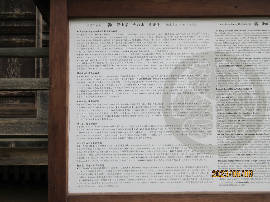 さて、洞爺湖町から隣町の伊達市有珠へ。江戸時代に幕府が建てた蝦夷地に出来た3つのお寺の一つである善光寺へ。